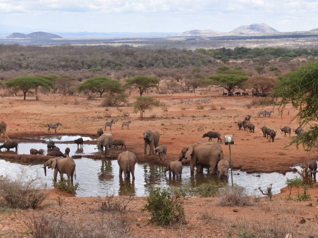 Afternoon game viewing drives in the park. Tsavo West National Park offers some of the most magnificent game viewing in the world with large herds of dusty-red elephants, hippopotamus, giant crocodiles, black rhinoceros and African buffalos. The park also has the lion, the cheetah, the leopard. The "big five" can be seen in Tsavo. Birdlife is abundant as more than 600 species of bird have been recorded.