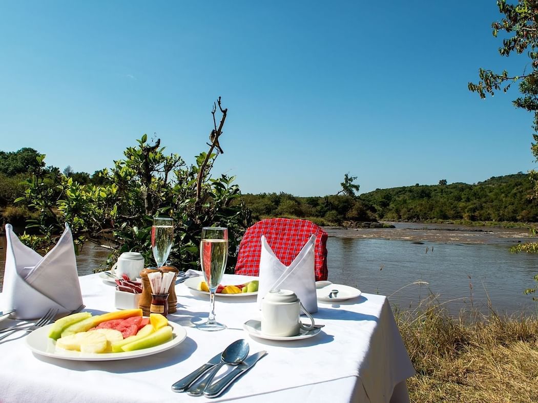 This morning, crown your game viewing experience with a “Bush Breakfast” by the Mara River Hippo Pools! One cannot resist the charming “Jambo” from the chefs and Masai warriors as they welcome you to our wonderfully set breakfast buffet of cold cuts, fruits, cereals and hot dishes with eggs made to your specifications as you wait. The hippos keep you company and only say “Kwaheri” (goodbye) after you have had enough.