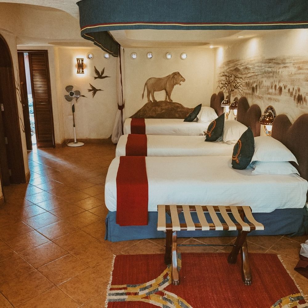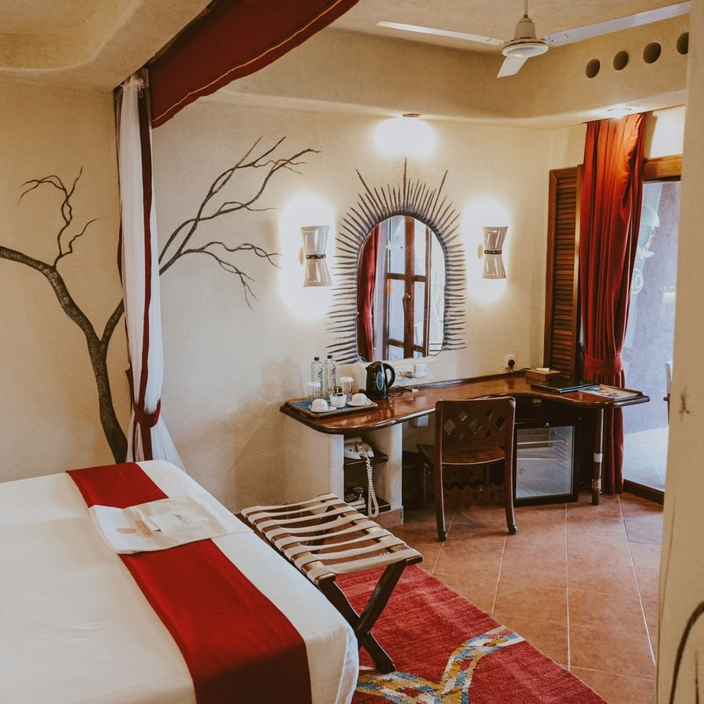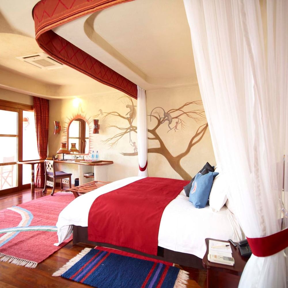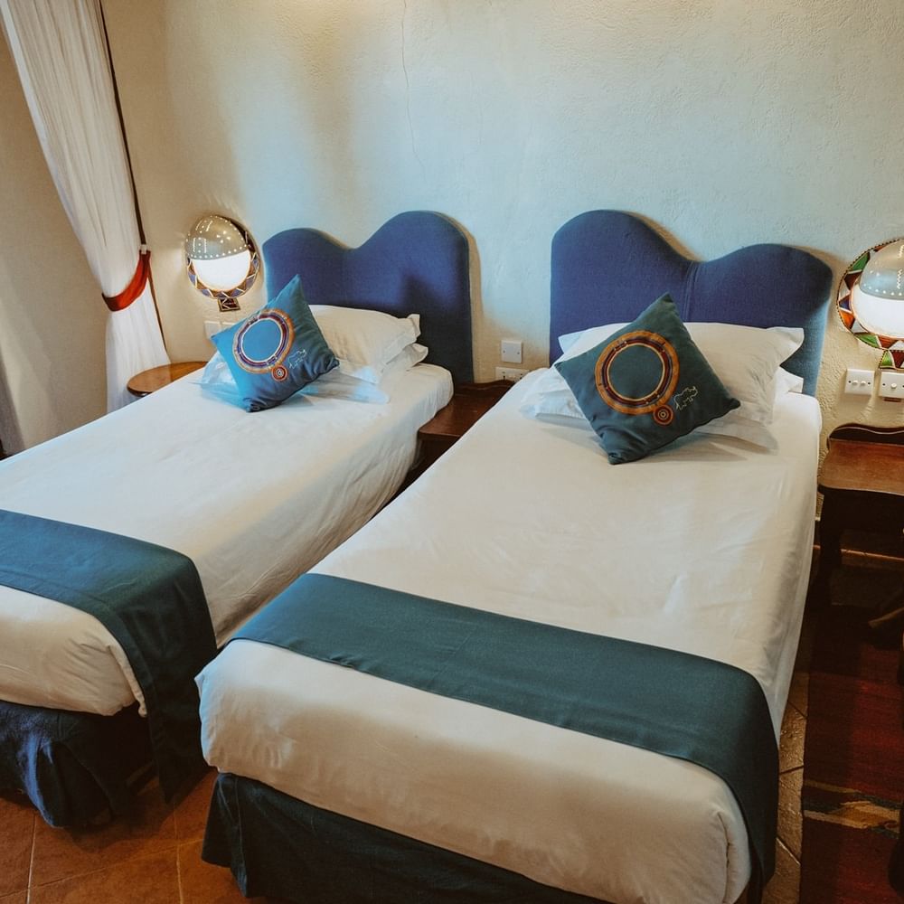 Infused with Maasai-inspired décor, this room features twin beds and a private balcony overlooking Amboseli’s sweeping plains. Traditional artifacts, hand-painted murals, and warm tones create a cosy and culturally rich retreat.