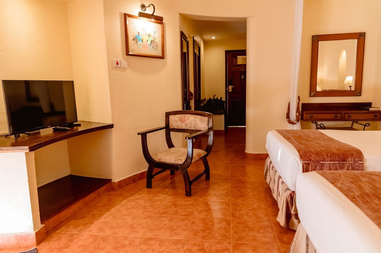 Modern amenities like complimentary Internet and flat-screen televisions with cable and satellite channels along with personalised touches like ceiling fans and comfortable robes enhance the guest experience.