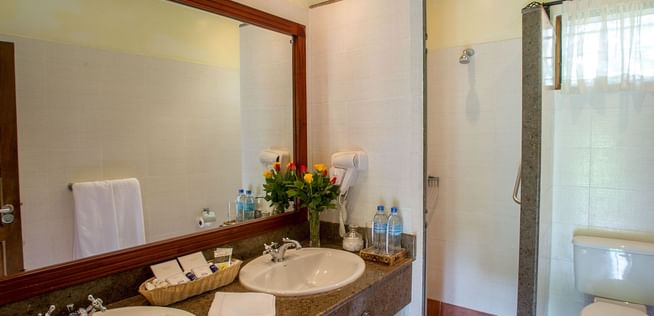 Modern amenities like complimentary Internet and flat-screen televisions with cable and satellite channels along with personalised touches like ceiling fans and comfortable robes enhance the guest experience.