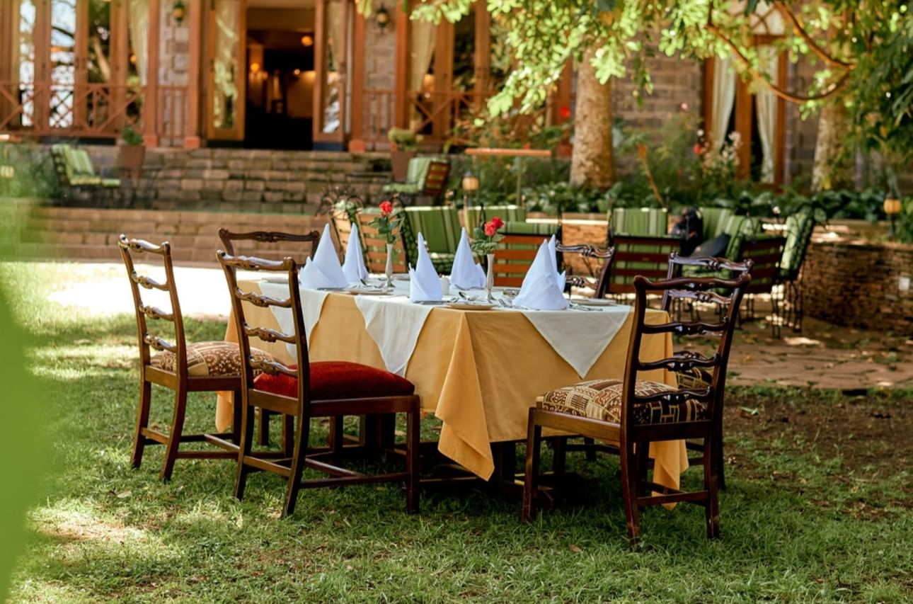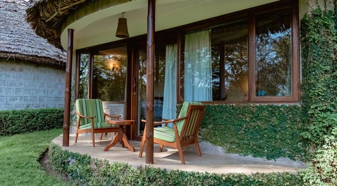 The ambience of our Arusha hotel is warmly reminiscent of our origins as a colonial era coffee farm, beginning with the welcoming stone-built reception area and extending to cottage-style rooms neatly arranged among landscaped lawns and the colourful banks of Bougainvillea. Traces of our heritage present themselves in elegant, country-manor interiors featuring unique artefacts, leaded windows and French doors opening to extensive lake view gardens. Social areas within our Arusha hotel include a library, a lounge and a restaurant offering an enchanting wood fireplace and lake and garden views.