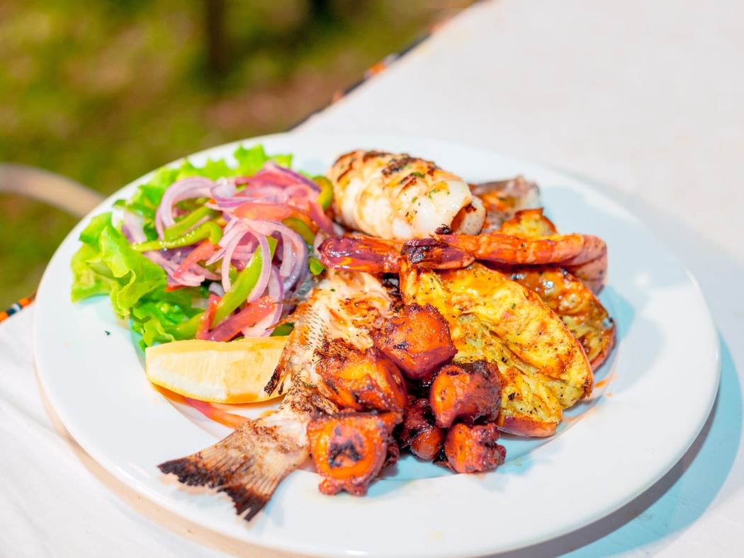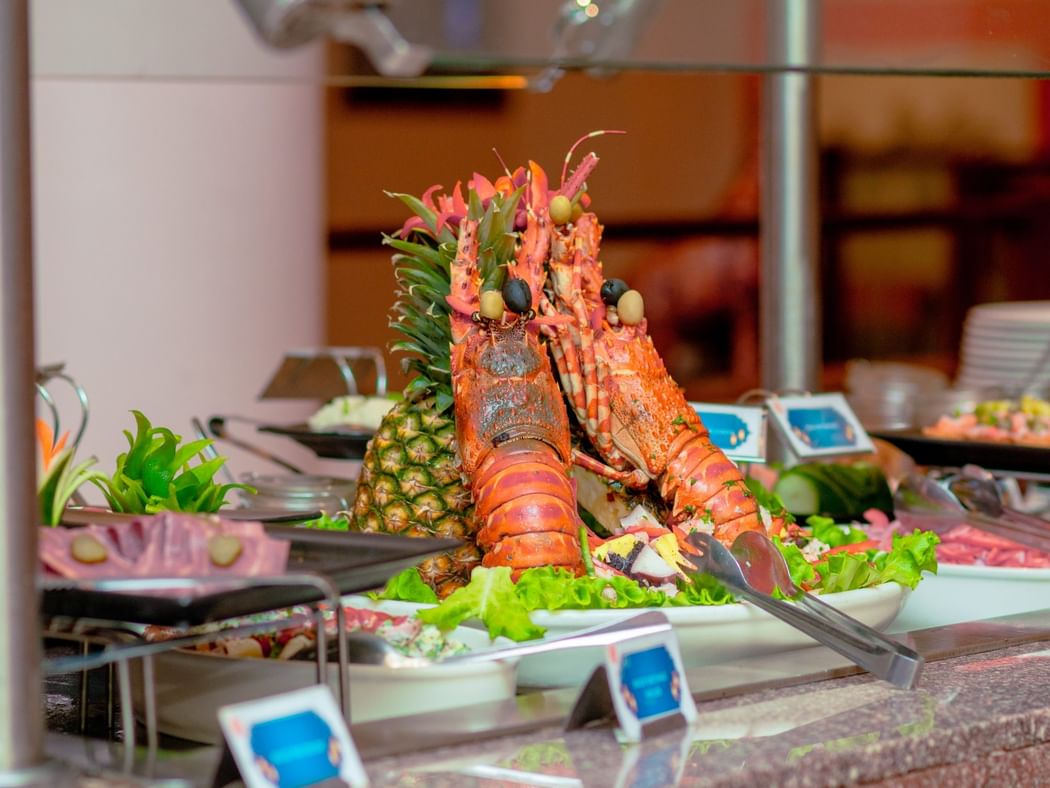 Discover our enticing new seafood buffet experience. The recently restyled Serengeti Restaurant offers an ambience that is light, airy and reminiscent of a Safari Lodge. Enjoy a relaxed dining experience for breakfast, lunch and dinner, featuring elaborate salad and dessert islands, hot and cold dishes and active cooking stations. Sophistication is reflected in the warm, natural décor and you can choose to dine indoors or al fresco on the shaded outdoor terrace. Exciting theme nights such as the Seafood Night on Wednesdays, Indian Night on Thursdays, Taste of Africa Barbeques on Friday and the Family Brunch on Sundays shall surely tantalize your palate. Choose from a variety of fresh seafood offerings and have the chef prepare your food exactly the way you like it.