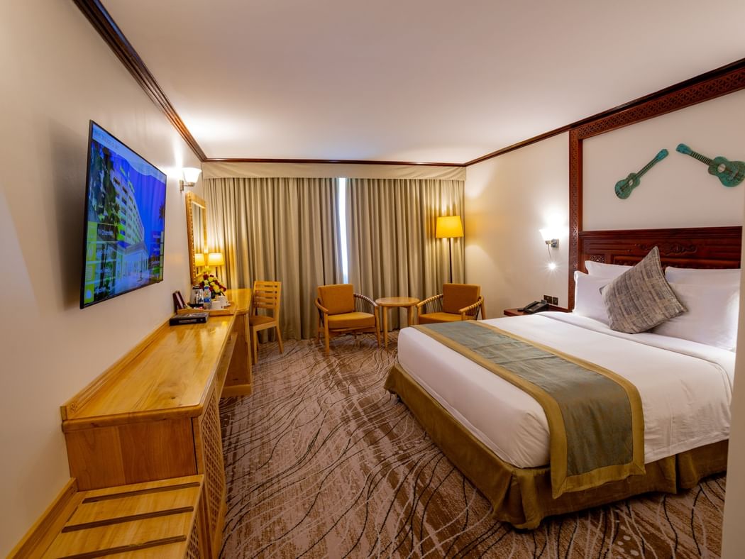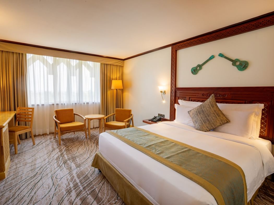 A Sanctuary in a busy city The Serena lived to the name as a peaceful oasis for a couple of days exploring Dar. Well tended, generous grounds, a clean and refreshing swimming pool, a varied and delicious buffet and sizeable clean rooms with large comfy beds. The housekeeping staff and restaurant staff were friendly and helpful. Our rooms were 7th flr - I liked the relatively low rise, sympathetic building design. Steer clear of the big international brand names and try this hotel if you want a central location with proper respite from city bustle.