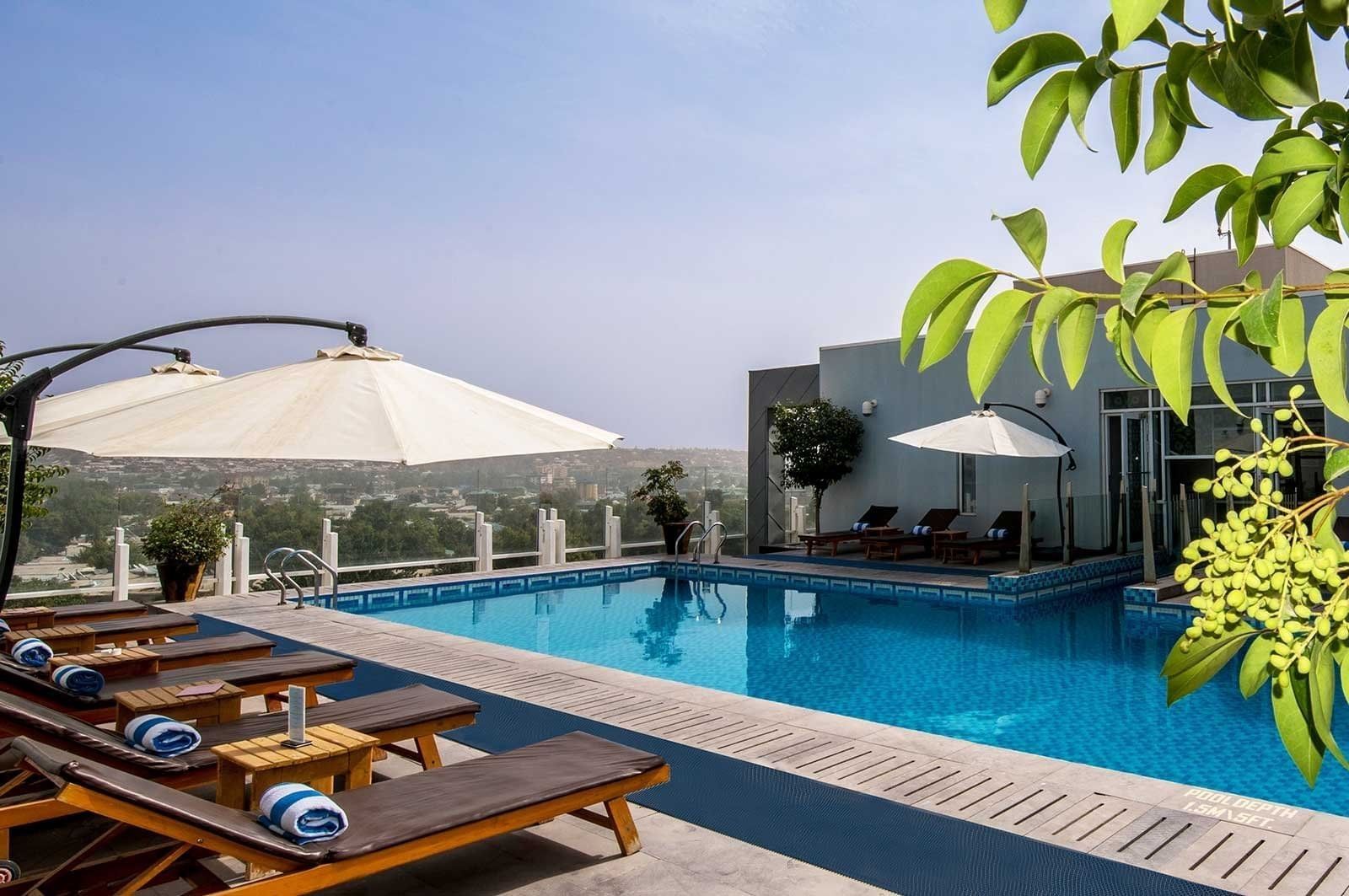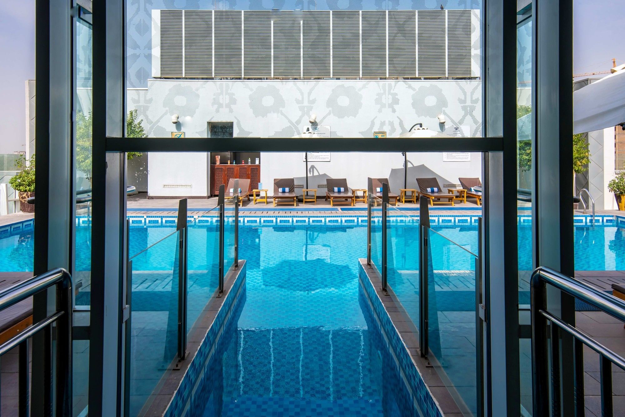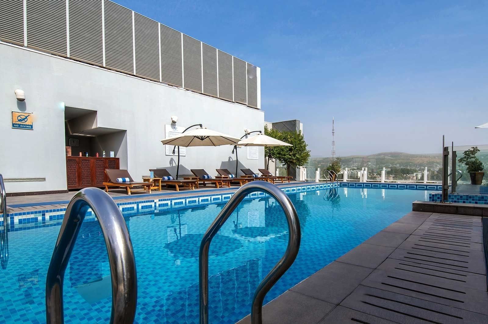 The adjoining world-class fitness centre includes separate areas for men and women, complete with locker rooms, saunas, steam rooms, and relaxation lounges. On the ninth floor rooftop, a shared outdoor pool awaits with panoramic city views, a sun deck with loungers, and a poolside bar serving light bites and refreshing drinks.