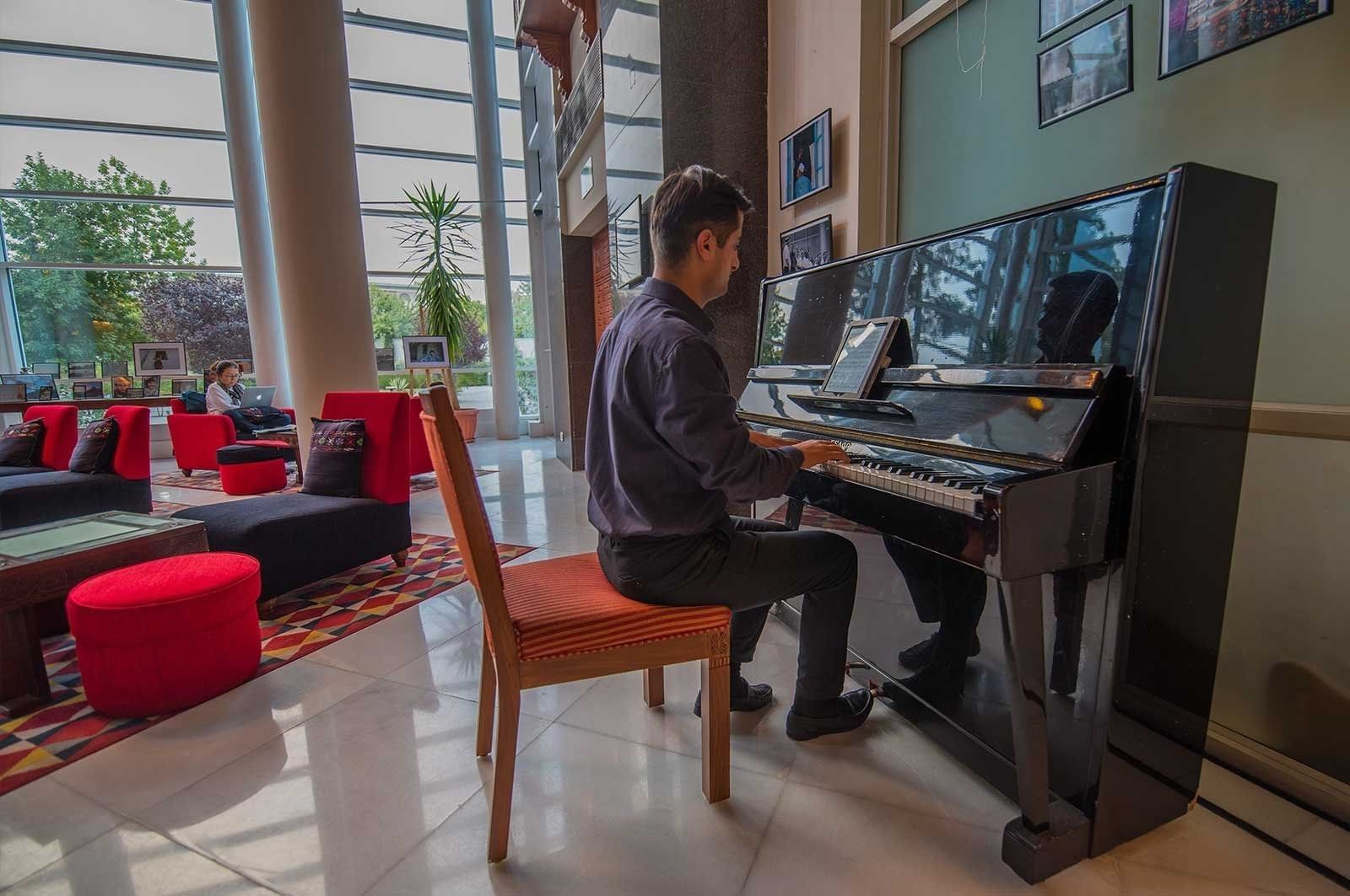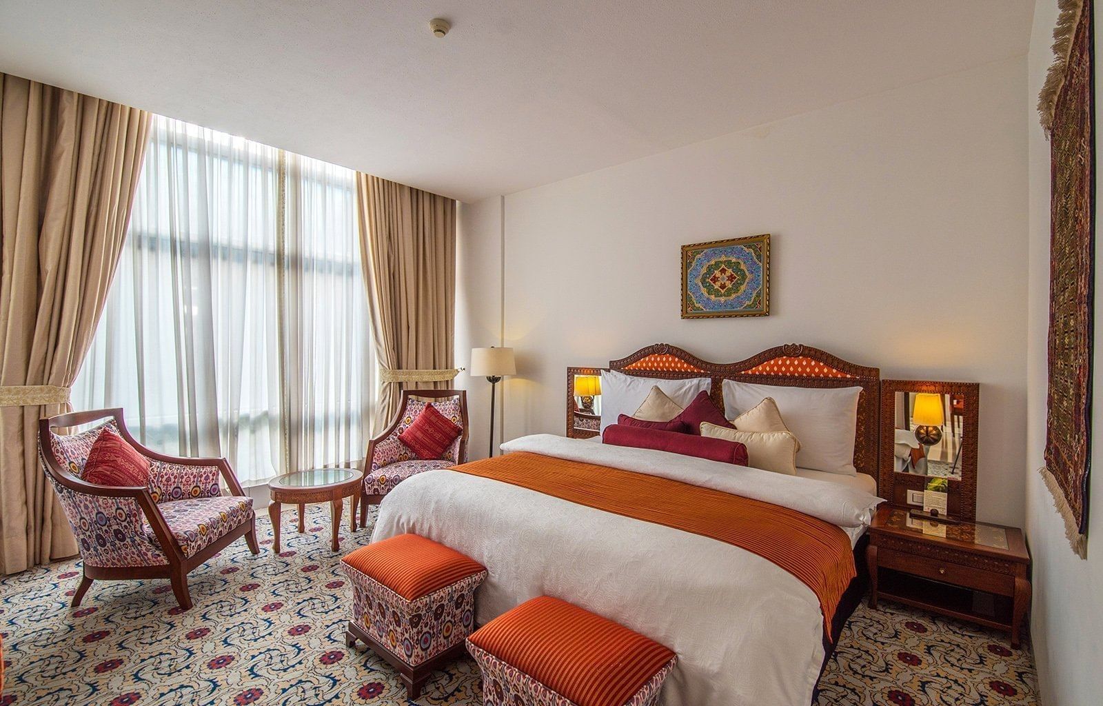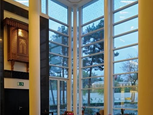 Inspired by the rich artistic heritage of Tajikistan, the hotel beautifully weaves traditional craftsmanship with contemporary design. A striking modern glass façade welcomes guests into interiors adorned with intricate decorative motifs, handcrafted details, and artistic expressions that celebrate the timeless culture of the region.