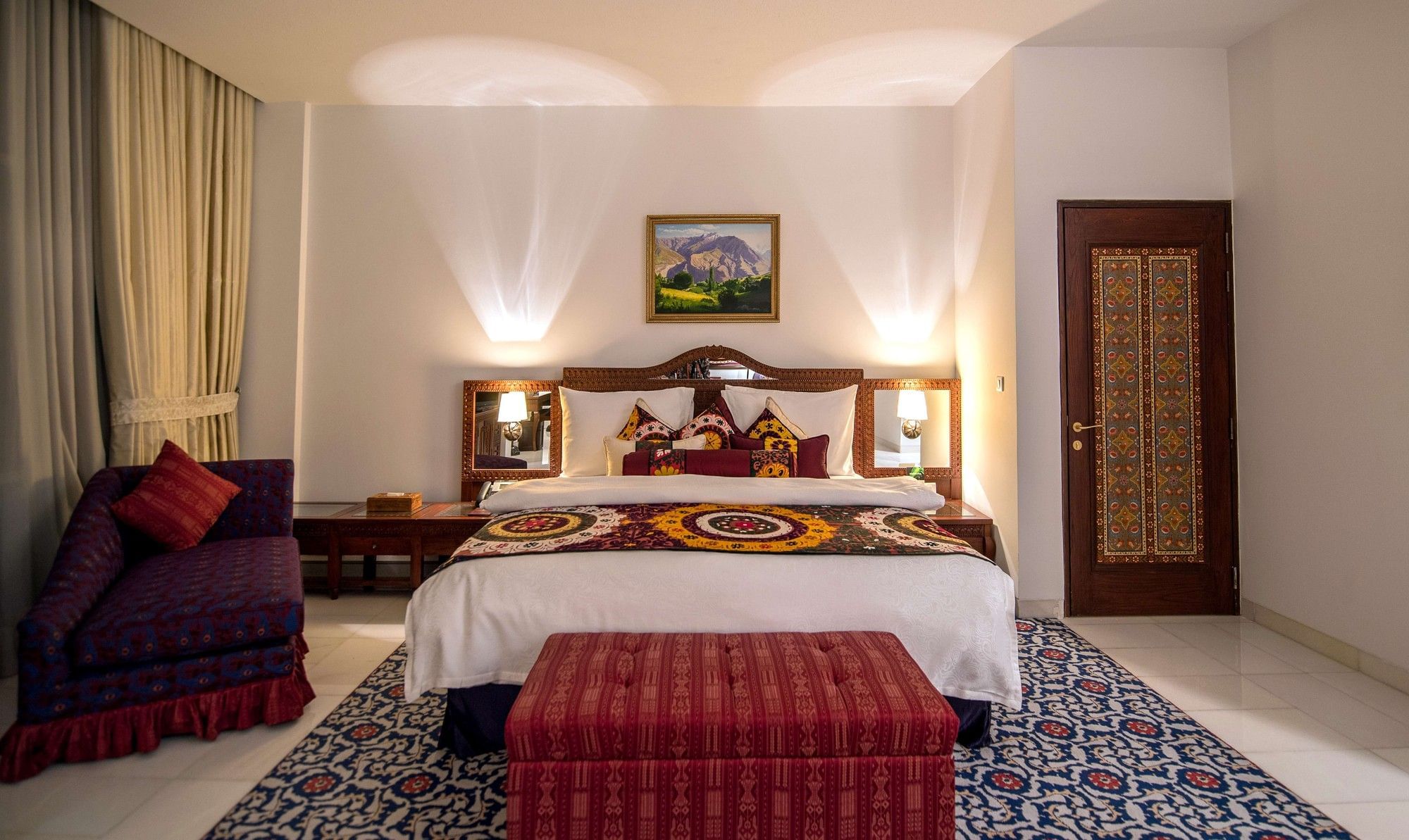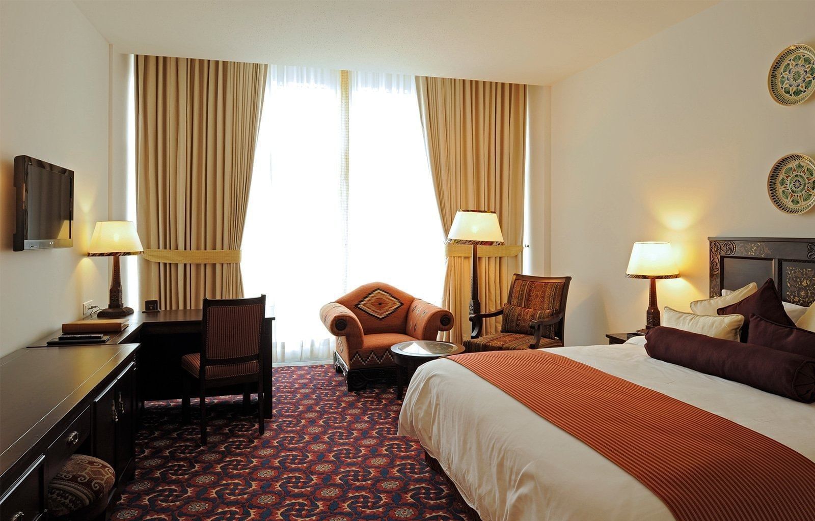 The 95 rooms, suites, and serviced apartments at Dushanbe Serena Hotel are thoughtfully designed to reflect the elegance and artistic heritage of Tajikistan. Inspired by traditional Tajik architecture and interior design, each space celebrates the exceptional craftsmanship of local artisans while offering the comforts of contemporary luxury.