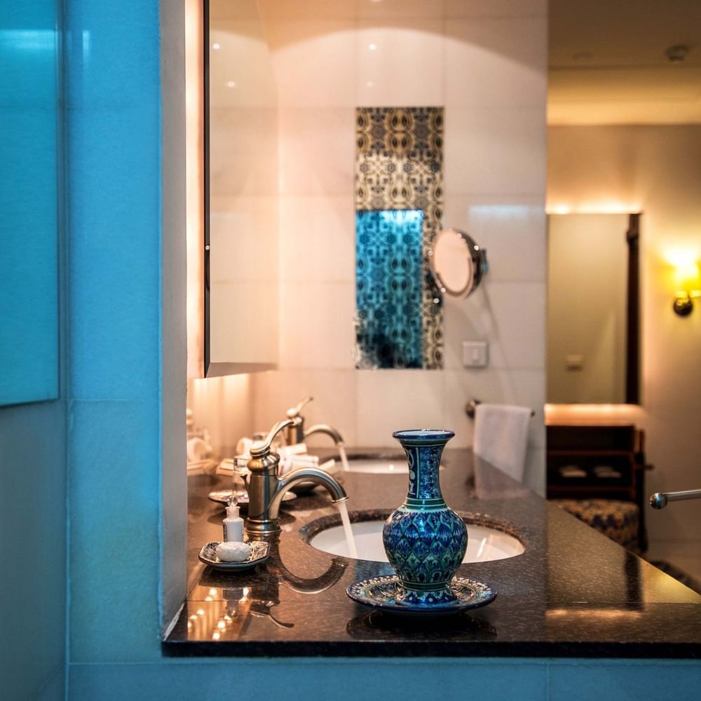 Health, wellness, and balance form the essence of the Maisha Spa & Health Cluba Moroccan-inspired haven of harmony and tranquillity. This serene retreat blends traditional elegance with modern comfort, featuring white and blue floral glass tiles, intricately carved mashrabiya panels, shimmering mirrors, and soft lantern lighting that together create a calming and restorative atmosphere.