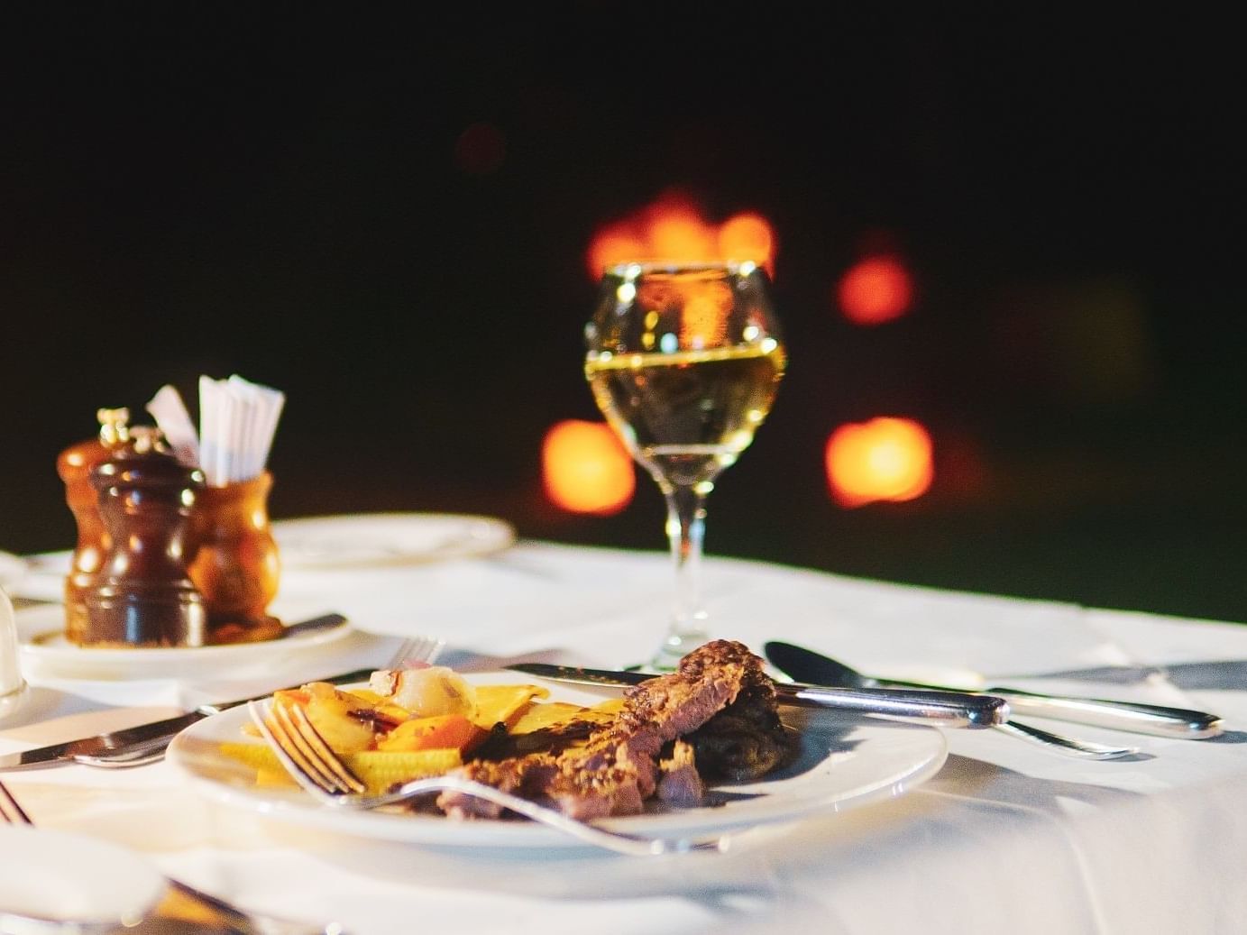 A stylish bar complements the setting offering panoramic vistas and a curated selection of beverages. For a truly memorable moment, indulge in a private bush dining experience, surrounded by nature and the sounds of the wild.
