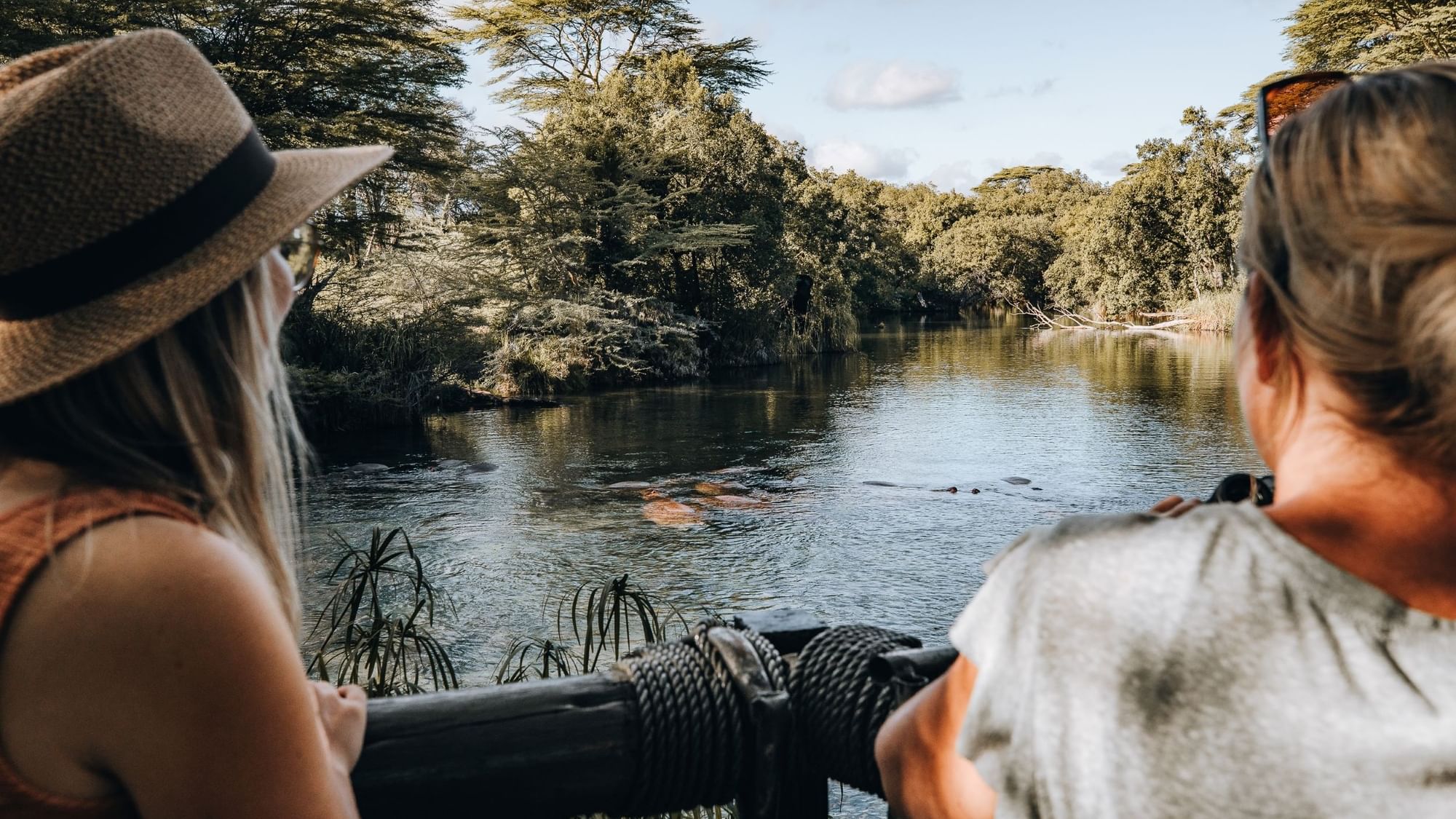 The main attractions are the two nature trails leading to an underwater viewing tank built to allow visitors to watch hippos.