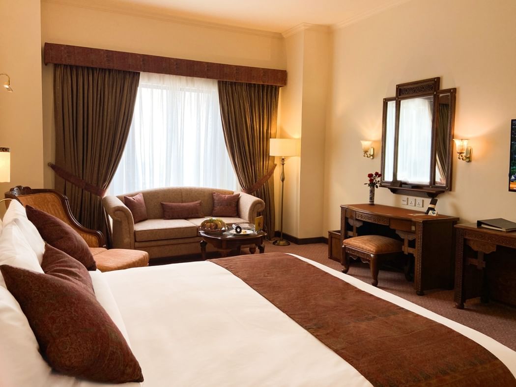 The Premier Room at Islamabad Serena Hotel combines elegance and comfort with a host of exclusive privileges. Guests enjoy access to the Premier Lounge, offering a quiet space for refreshments and business meetings. The stay includes complimentary laundry and dry-cleaning services, a well-stocked minibar, and full access to the Maisha Spa, fitness centre, and outdoor pool creating the perfect balance of luxury, convenience, and relaxation.
