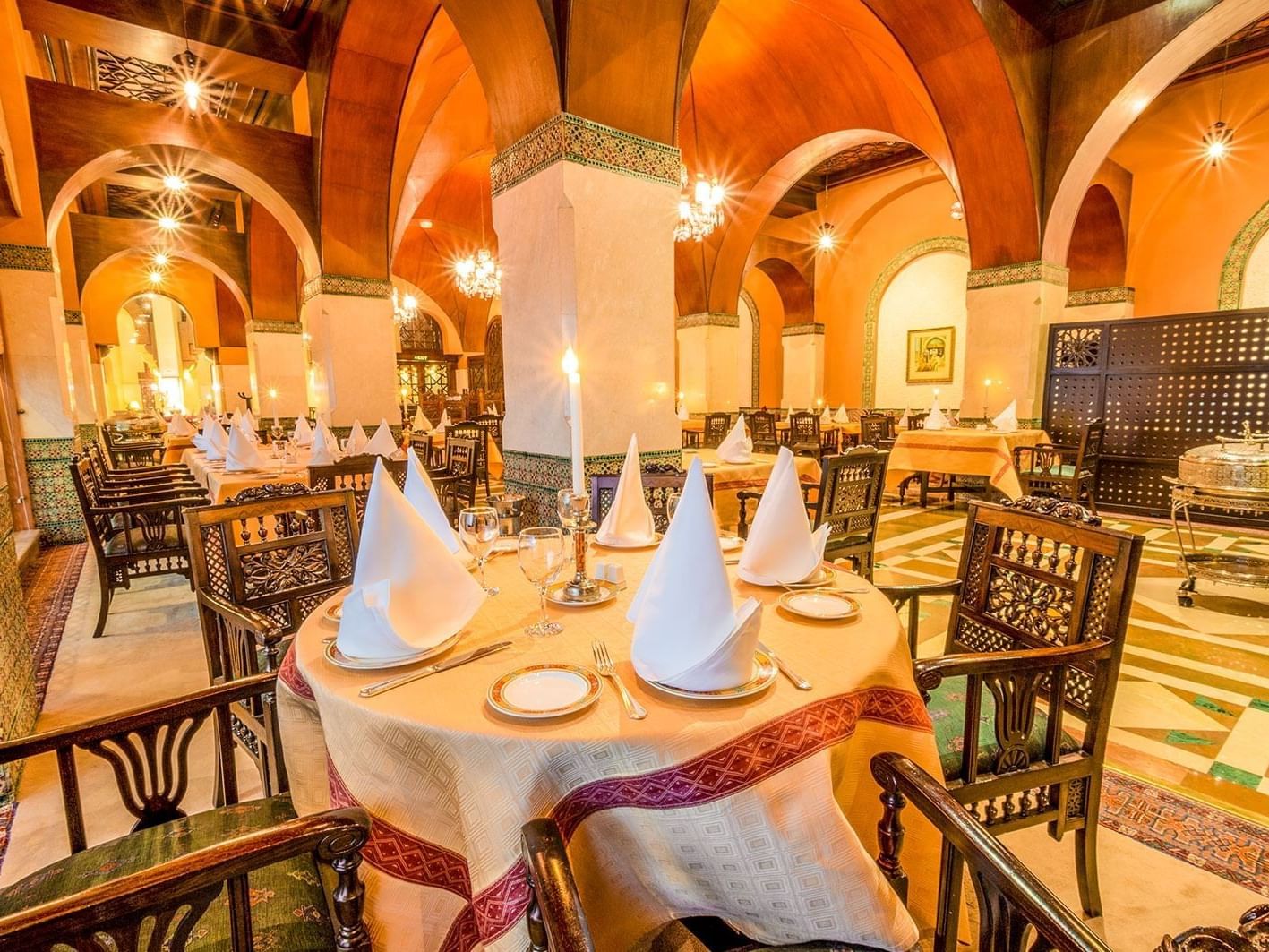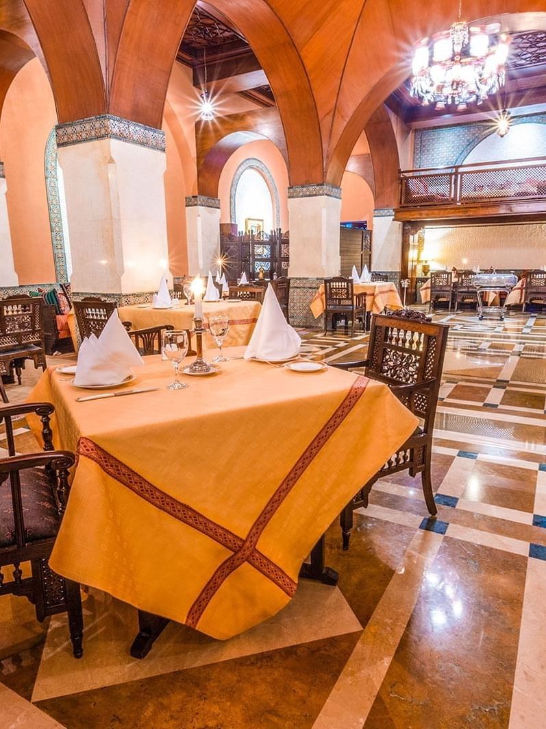 A traditional Middle Eastern ambiance welcomes you at Al-Maghreb, where intricate ceramic wall tiles and arched ceilings create an atmosphere of exotic elegance. This richly decorated restaurant offers a complete dining experience, showcasing the diverse flavours of Middle Eastern and Arabian cuisine.