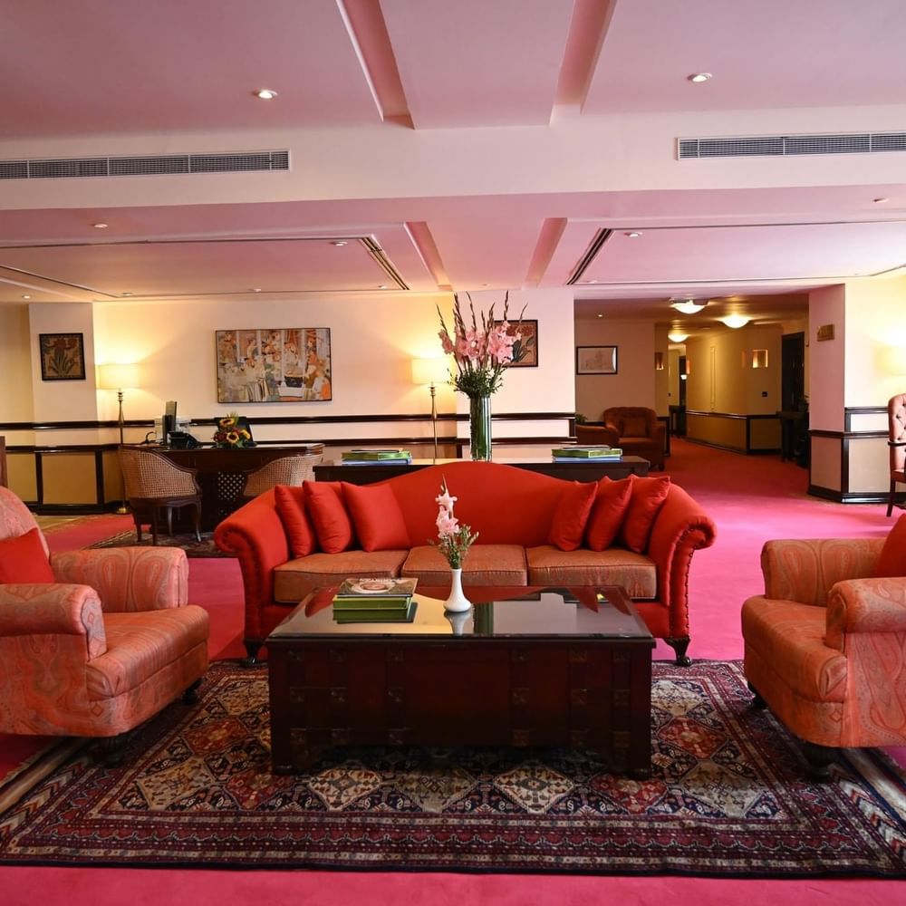 Elegant living room with ornate furniture and chandelier at Islamabad Serena Hotel in Islamabad.