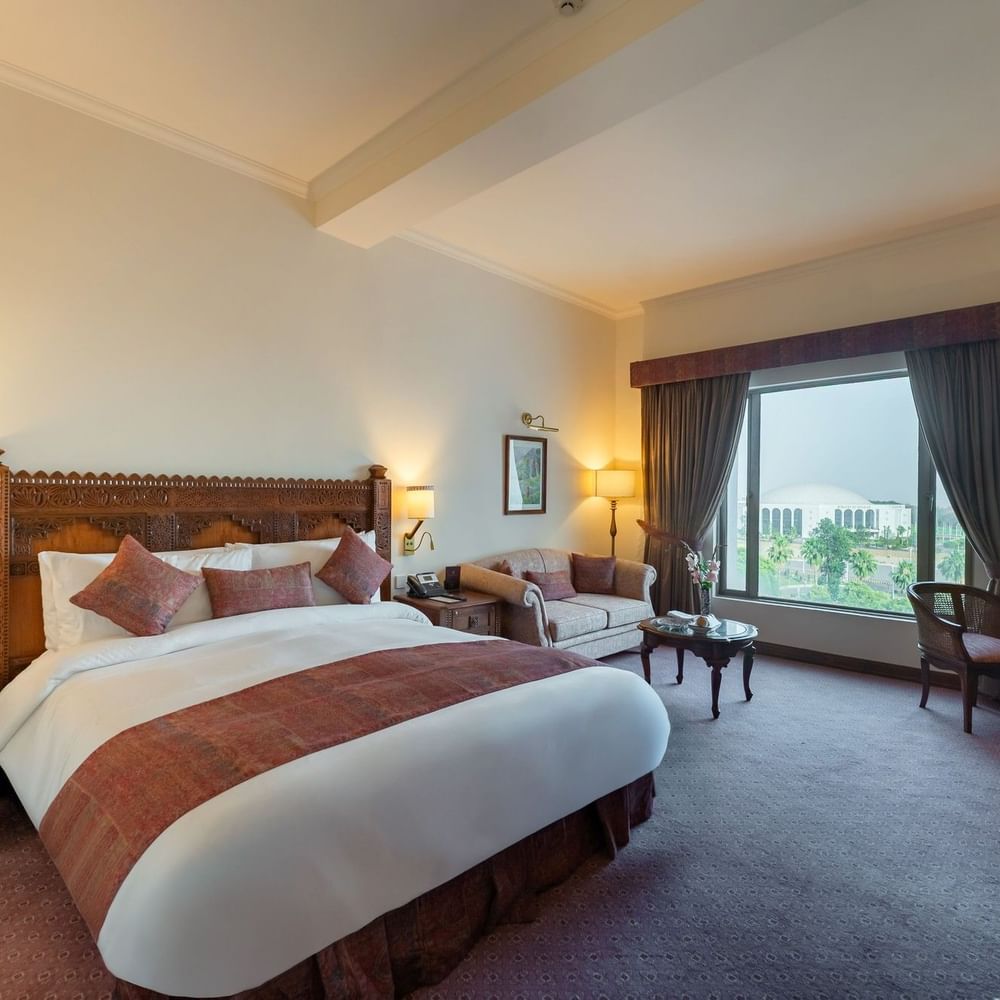 Nestled within 14 acres of landscaped gardens, the hotel offers tranquil views of Margalla Hills and Rawal Lake.