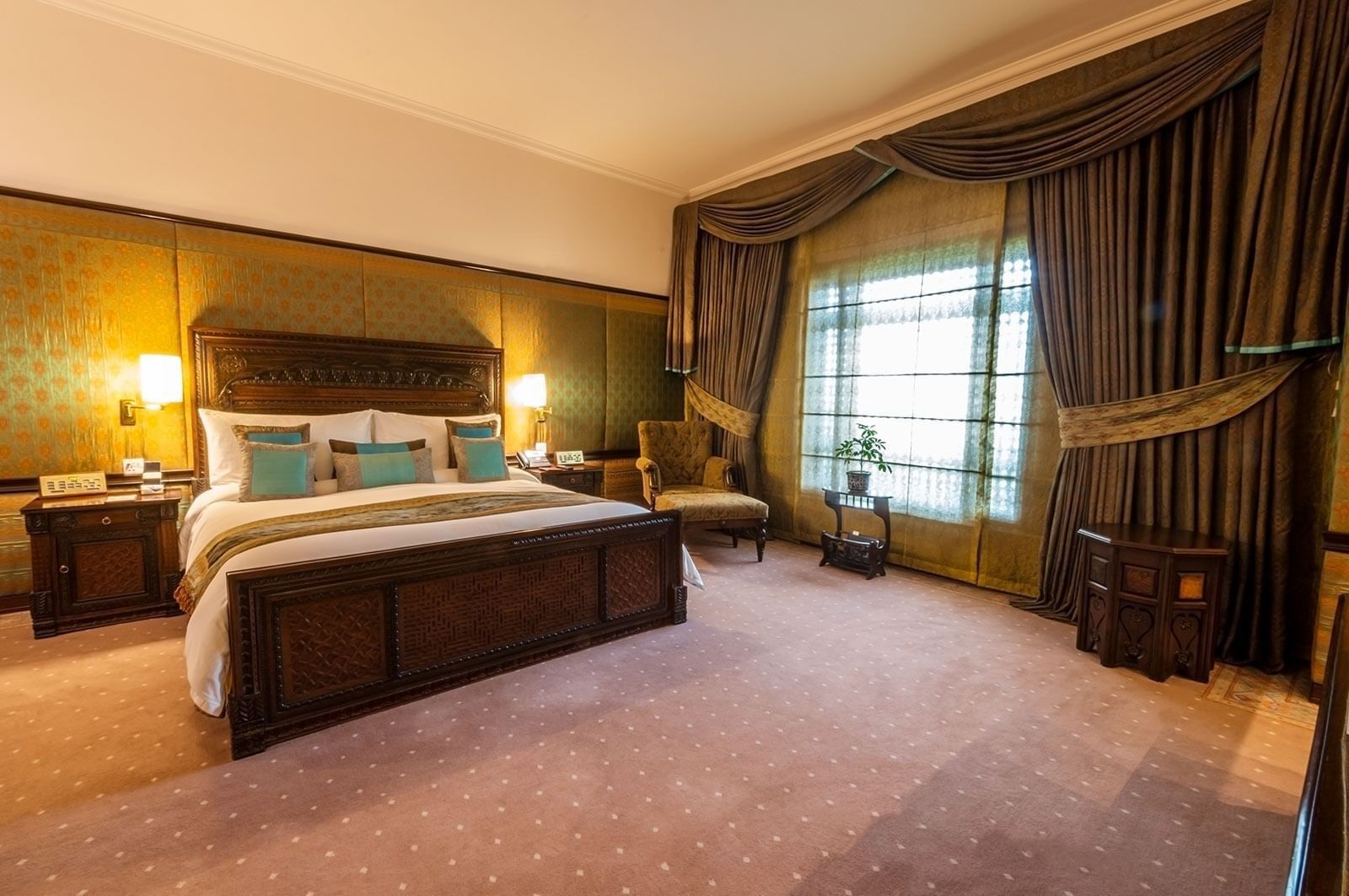 Elegant Presidential Suite with luxurious decor and modern amenities at Islamabad Serena Hotel.