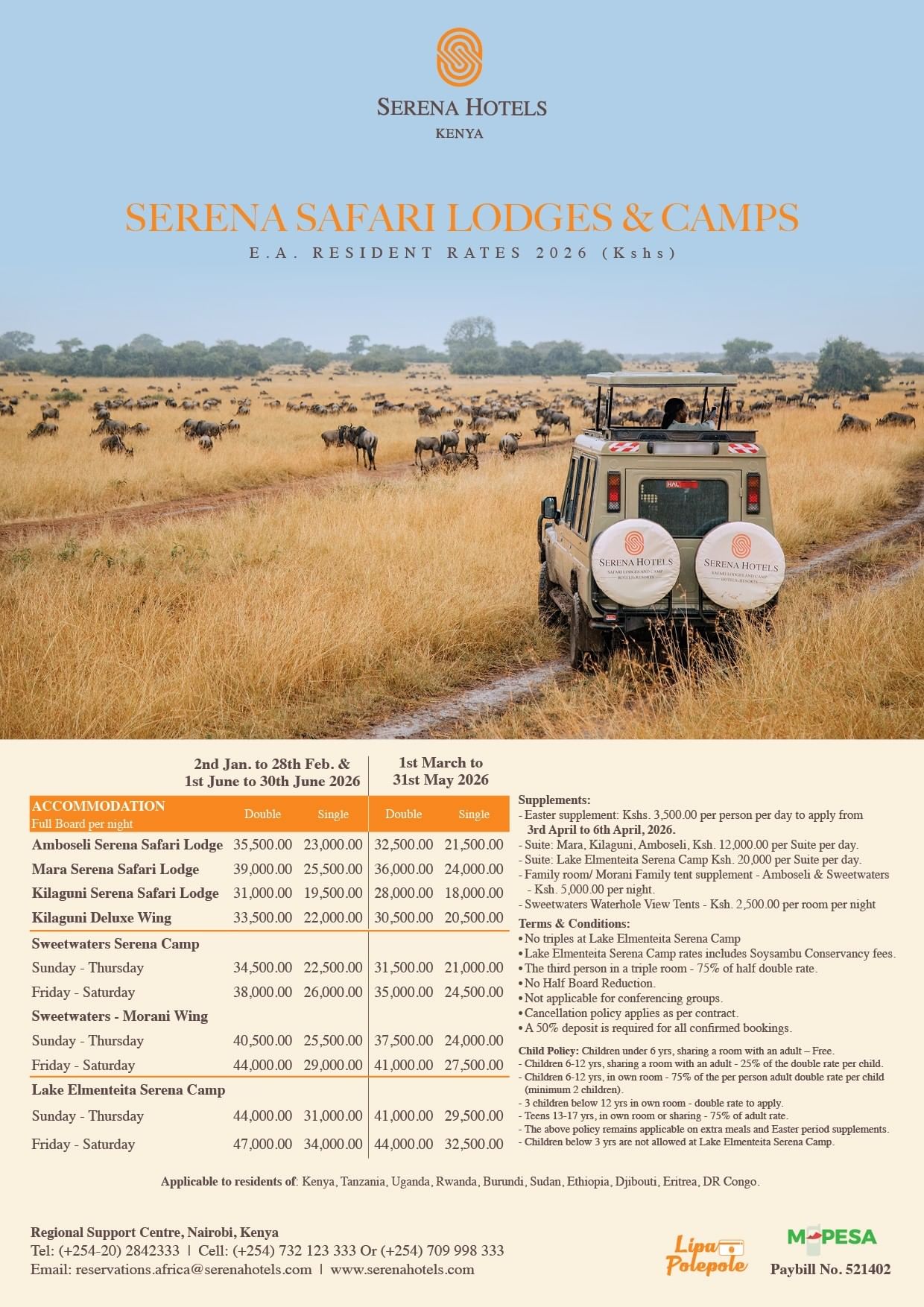 T: . T: +254734699865 T: +254734699699 E: kilaguni@serenahotels.com E: reservations.africa@serenahotels.com