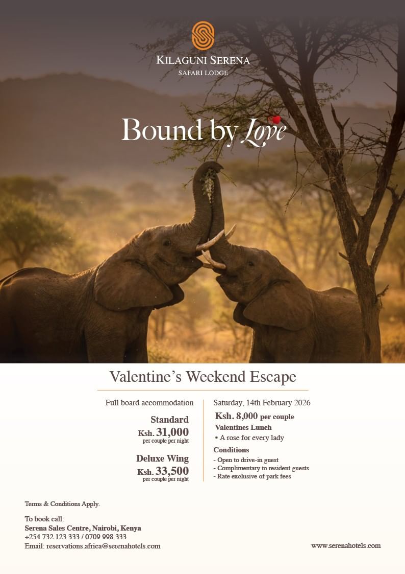 T: . T: +254734699865 T: +254734699699 E: kilaguni@serenahotels.com E: reservations.africa@serenahotels.com