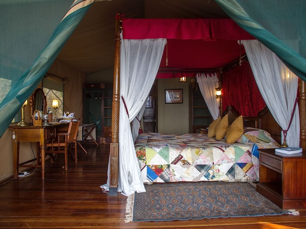 A really special place to stay with old colonial vibes. The rooms are perched up on wooden stilts and contain an old fashioned four poster bed, old wooden cabinets yet luxury shower and double bathroom sink. The food was exceptionally good and the service was magnificent. Animals coming up the pool was so cool and the view over the Savannah was unforgettable