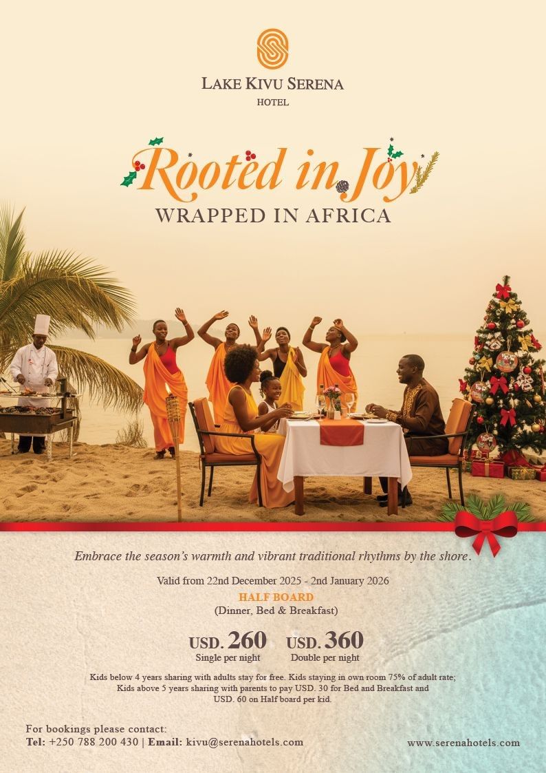 Food and drinksThere are multiple dining venues. The Kiyaga Restaurant (with lake views) offers buffets and à la carte options, mixing Rwandan, wider African, and international cuisine.