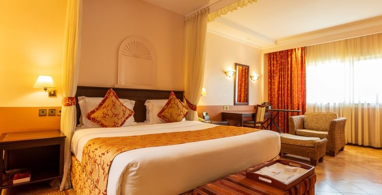 Neatly arranged throughout our Tuscan-inspired landscape, Lake Victoria Serena Golf Resort & Spa offers 112 Deluxe Guest Rooms, eight Executive Suites and two Presidential Suites. All accommodations are appointed in elegant Mediterranean hues of terracotta and cream. The splendour of our surroundings is reflected in spaces featuring fresh designs and décor in addition to abundant natural light. The Resort offers both a contrast to and an extension of the 5-star profile of the flagship Kampala Serena Hotel, thus ensuring that the Serena Portfolio embraces all the aspects of Uganda’s social and corporate life.