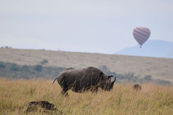 Hot Air balloon flying near hills at Mara Serena Safari Lodge
