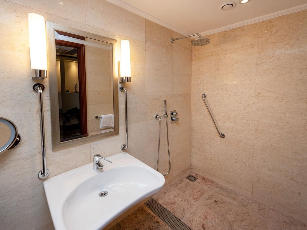 With a lavishly appointed bathroom, dressing area, vanity unit, a mini bar and 24 hour room service, wake up to a fresh cup of coffee prepared in your room and catch up on work in the flexible workstation.