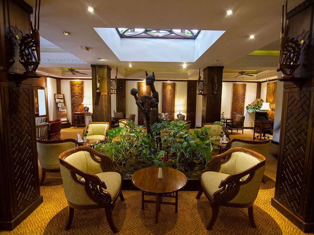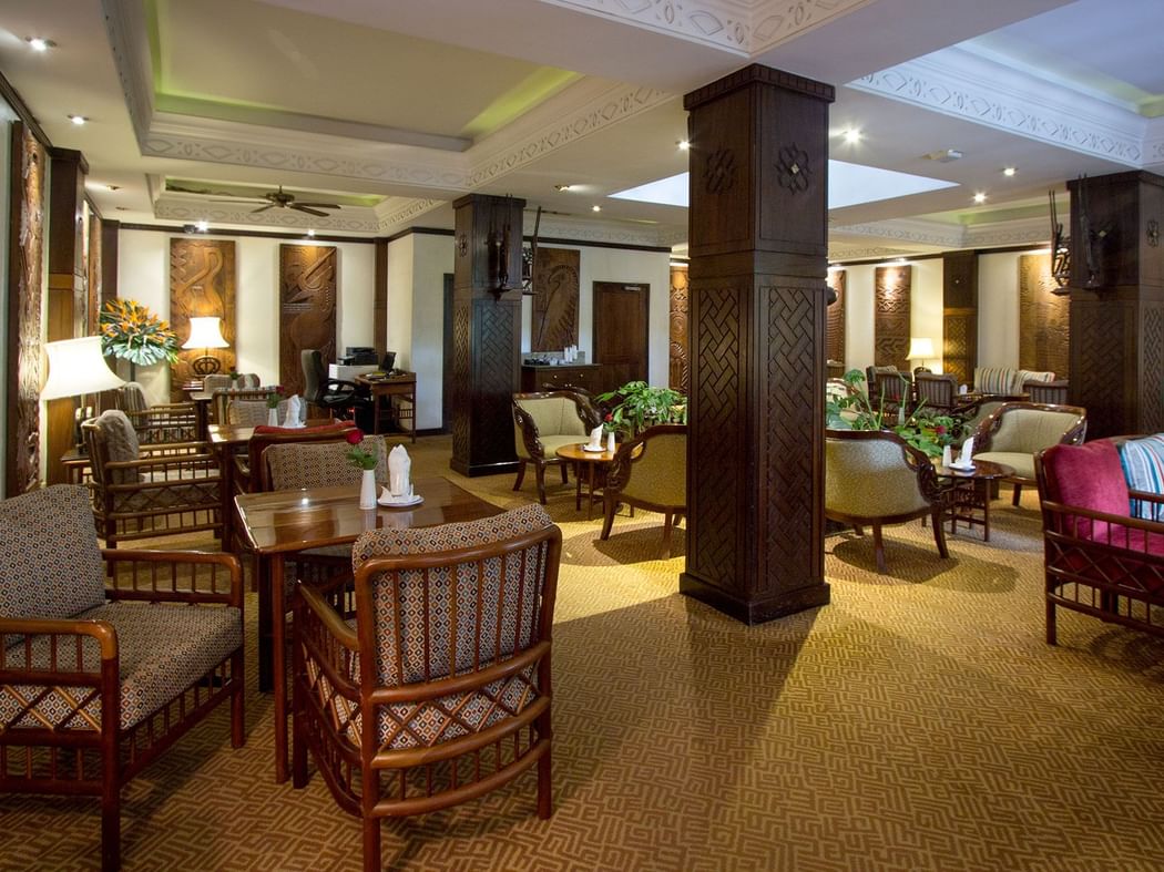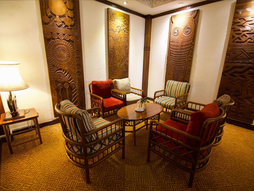 Enjoy an elegant West African design-themed lounge ideal space with careful seating arrangements for any social occasion during the day and evening. Relax and have those meetings while enjoying our menu which offers a large variety of quality coffee, tea, fresh juices, and pastries alongside a simple menu of sandwiches and salads.