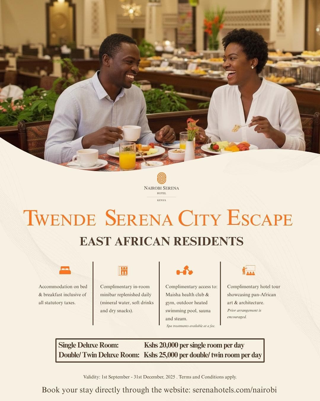 We recently stayed at the Serena Nairobi with our family of five (two energetic youngsters and a teenager) and it was our home base at both the start and finish of our Kenya trip. The hotel's classic colonial design, beautifully blended with authentic African decor, feels calm and comfortable. Our adjoining rooms were spotless and comfy, which is a big plus when you're traveling with a crew. Plus, the location was super convenient, offering easy access to the expressway and getting around Nairobi (get a chauffeur service). The kids loved the pool and gym, but the real highlight for them was the buffet with a great variety, from fresh fruit to a great mix of local and British fare. There are also lots of nooks indoors or by the pool to enjoy drinks and snacks. But honestly, what truly made our stay were the people. We were so grateful for all the help from Alex, Priscah, Calvin Momanyi, Augustus, Jennifer, and Ann at the front desk—they were all fantastic. Irene Kilesi from Guest Relations was incredibly thoughtful and always checked in on us, which we really appreciated. And Robert Onyango at Concierge was a lifesaver with all our planning questions (and helping print boarding passes). Ambrose Ndambuki made mealtimes a breeze, and Carol from the bakery whipped up some seriously delicious treats. Finally, Angellah Machayo, Boniface Kyalo, and Makau at the bar created such a relaxed and welcoming atmosphere. All in all, it was a genuinely pleasant and easy stay, perfectly suited for a traveling with family. We'll definitely return.