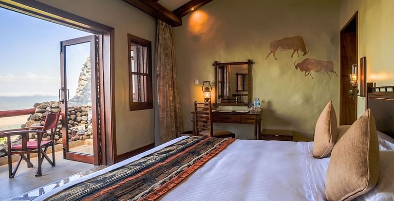 With a private stone balcony opening onto the blue-green vastness of the Crater floor below, it’s like you’re living alone in the “cradle of mankind.”
