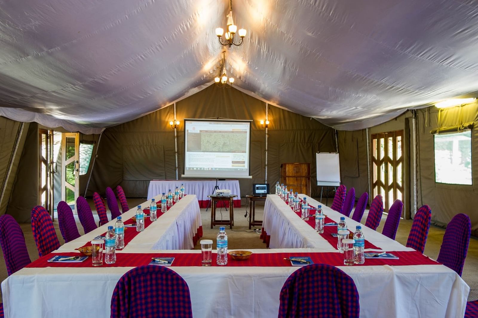 Accommodating up to 150 delegates, our safari-style conference venue is a canvas tent with stunning views over the Crater rim to the plains below. Exceptionally spacious, the venue features a raised wooden floor and canvas walls and ceilings. From the early planning stages until the last delegates have departed, our experienced event planning team and caterers are at your service to ensure that every detail is perfect.