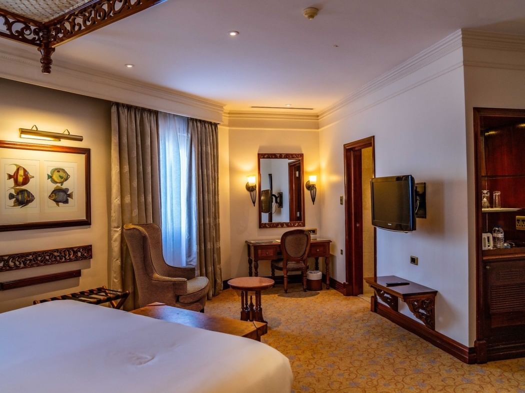 Our Deluxe Rooms Garden View have either King bed or 2 twins beds with separate walk in shower, bathtub glazed windows. The rooms are equipped with: air-conditioning;2 telephones with international direct-dial and voice-mail, internet (WIFI and hard-wire connection), mini bar, digital safe, tea/coffee making facilities, IP TV, LCD flat-screen satellite TV, 24-hour room service, dedicated resident's lounge, laundry, valet and shoe-shine, 240 V - 3-Pin electricity.