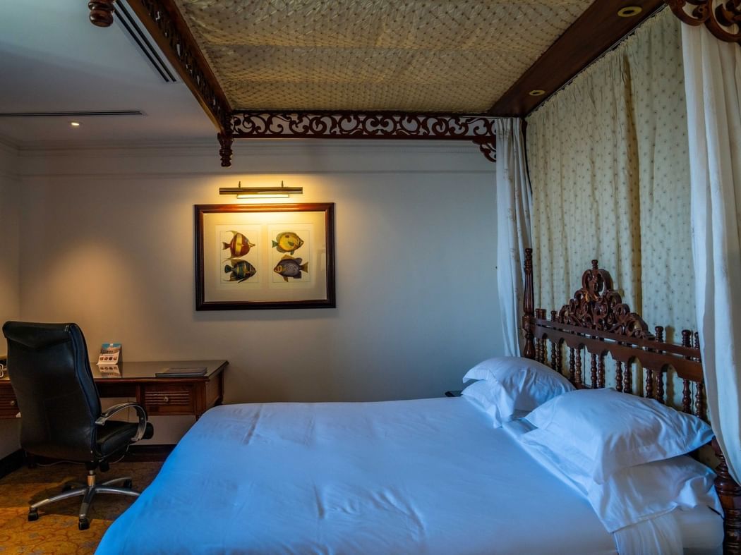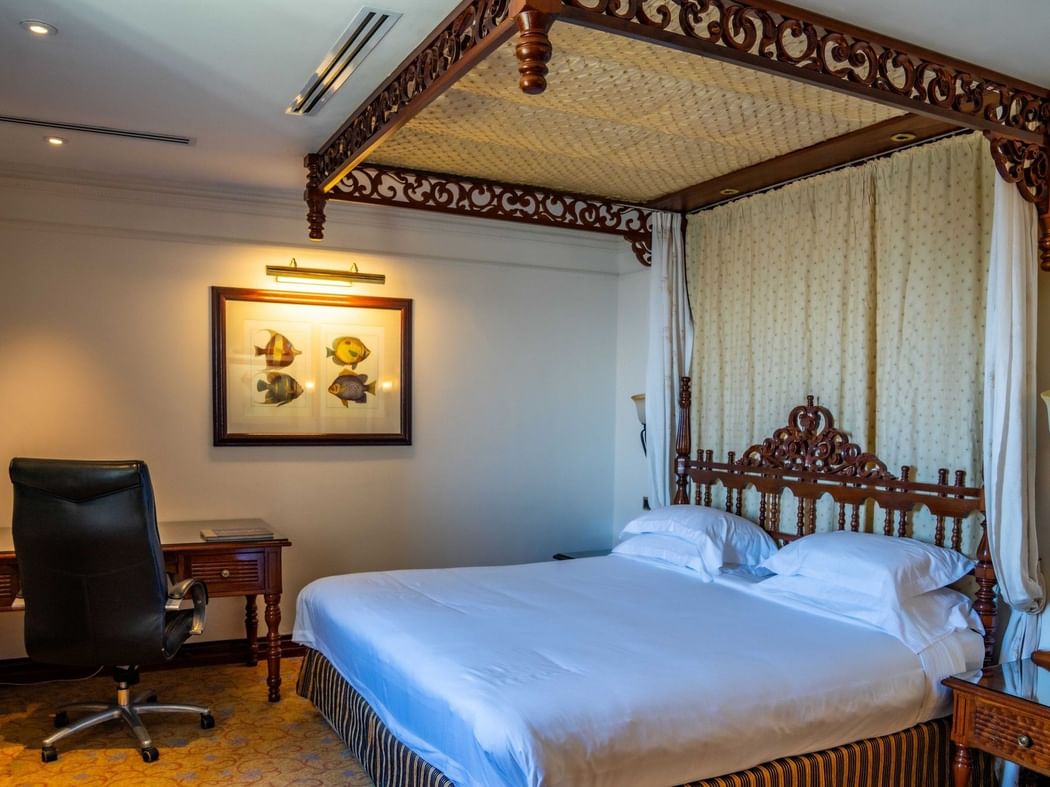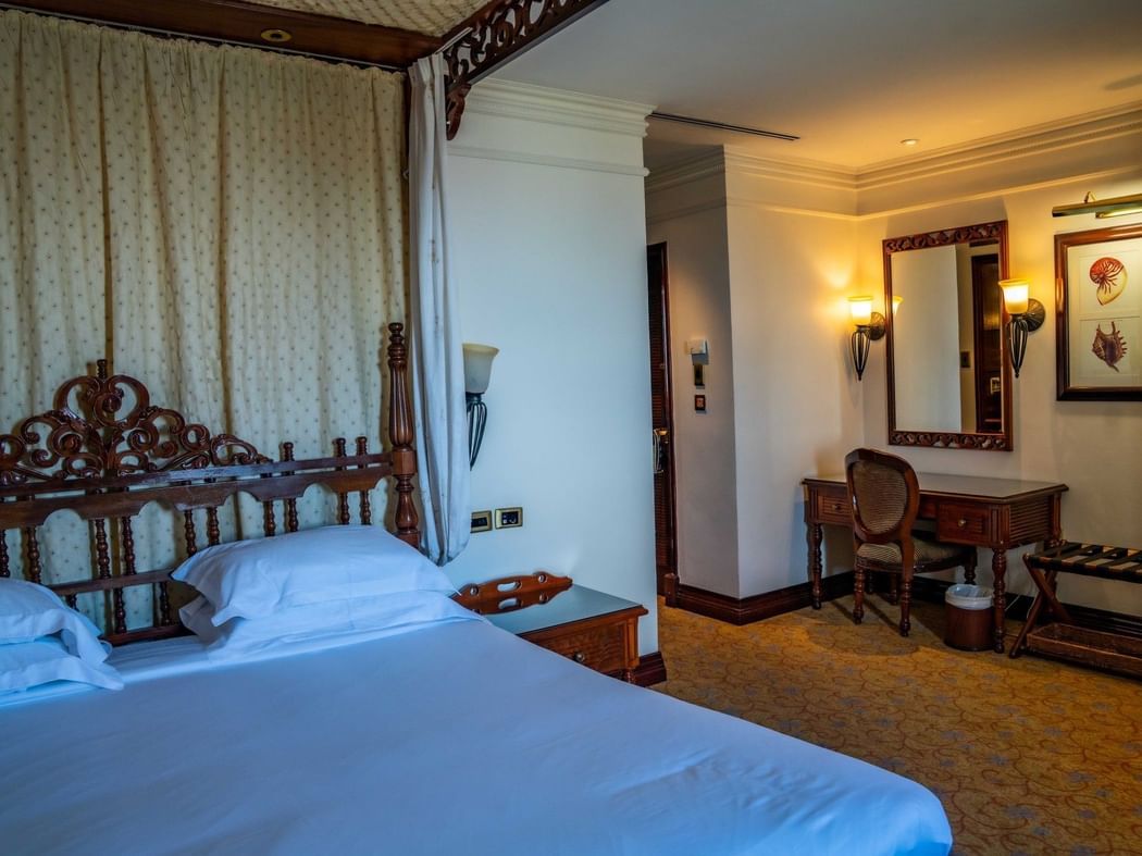 Our Deluxe Rooms Sea View have either King bed or 2 twins beds with separate walk in shower, bathtub glazed windows. The rooms are equipped with: air-conditioning;2 telephones with international direct-dial and voice-mail, internet (WIFI and hard-wire connection), mini bar, digital safe, tea/coffee making facilities, IP TV, LCD flat-screen satellite TV, 24-hour room service, dedicated resident's lounge, laundry, valet and shoe-shine, 240 V - 3-Pin electricity.