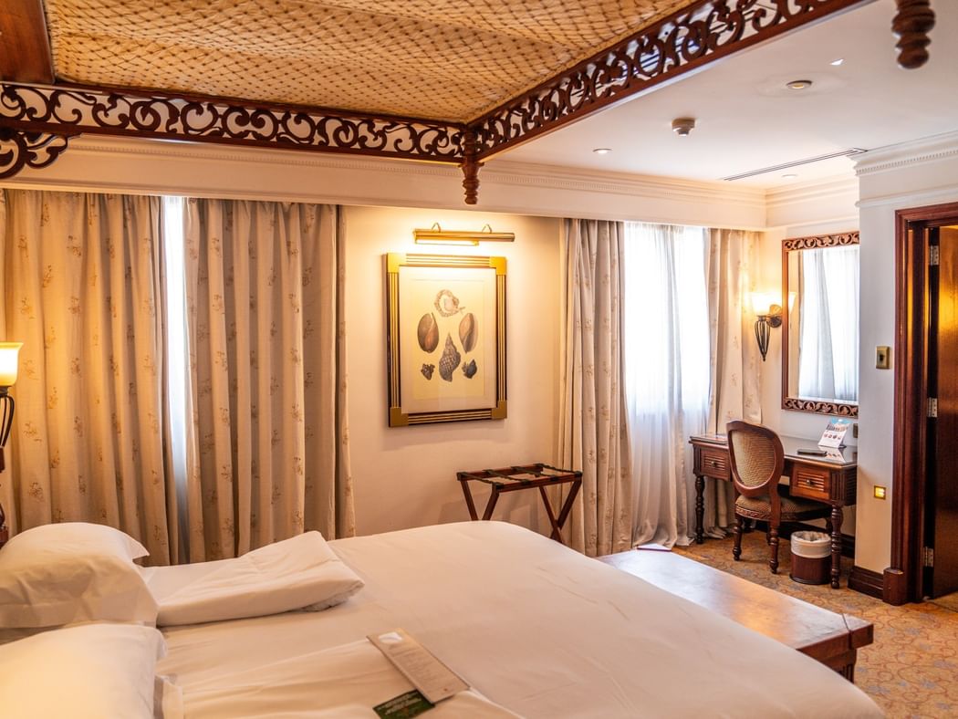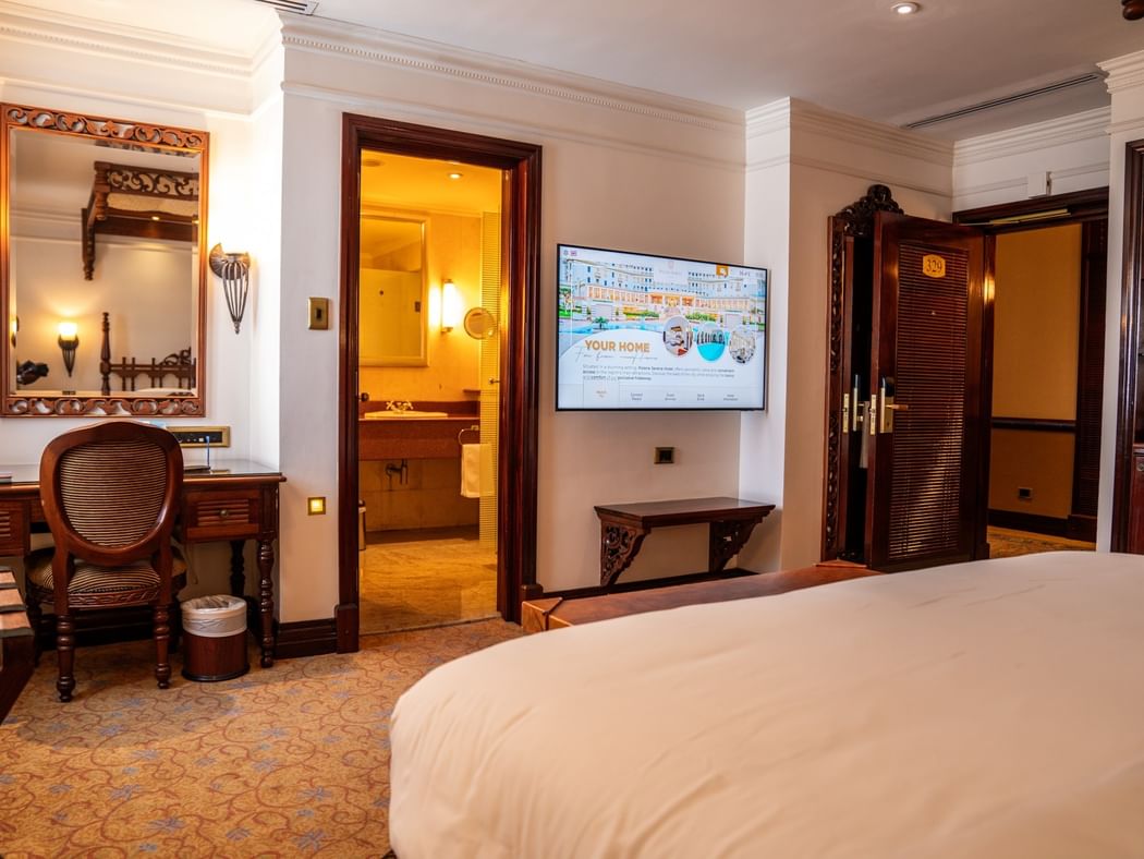 The Executive Rooms Sea View have a lounge area, i.e. sofa, coffee table, within the room. Some of the rooms can accommodate an additional 2 single beds for children up to 12 years old. Facilities: bath/shower, toilet. Television, air-conditioning, hair dryer, refreshment center, IDD telephone, 24 hours free wireless internet connection, electronic safe, mini-bar.