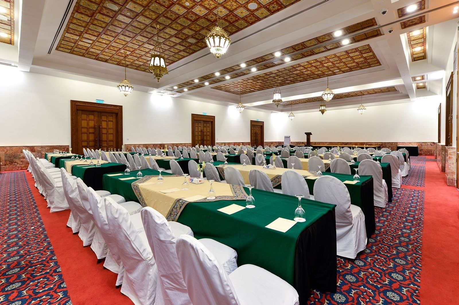 Архитектурное великолепие и внутреннее убранство каждого из изысканных конференц-залов, с уникальными характеристиками исламского и мавританского совершенства, будет визуальным праздником для ваших гостей. Наши современные конференц-залы и банкетные залы с новейшим аудиовизуальным оборудованием, элегантной обстановкой, вкусной едой и исключительным обслуживанием оставят неизгладимое впечатление у ваших гостей.