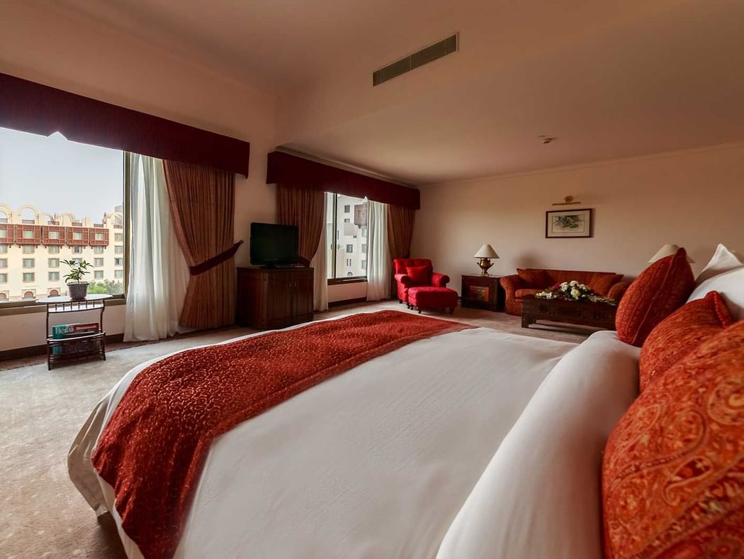 Наш просторный полулюкс с восхитительным видом на сад, кроватью размера "king-size", рабочим столом, элегантной ванной комнатой и сейфом, а также множеством приятных удобств. Воспользуйтесь бесплатным доступом в представительский лаундж Nazara, позанимайтесь в тренажерном зале на территории отеля или поплавайте в открытом бассейне с подогревом. Вы также можете пользоваться бесплатной стиркой четырех предметов одежды в день, бесплатными местными звонками, ежедневными местными газетами и комнатой для совещаний вместимостью до 8 человек (при наличии). Ваш супруг (а) размещается бесплатно, наслаждаясь всеми теми же удобствами, включая ежедневный завтрак "шведский стол" в ресторане Zamana. Номера для некурящих также доступны по запросу.
