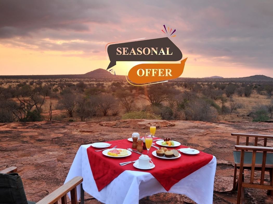 This evening enjoy a Sundowner Cocktail at a location within the park as you mesmerise at the breathaking views of the Tsavo and the african sun as it goes to sleep!