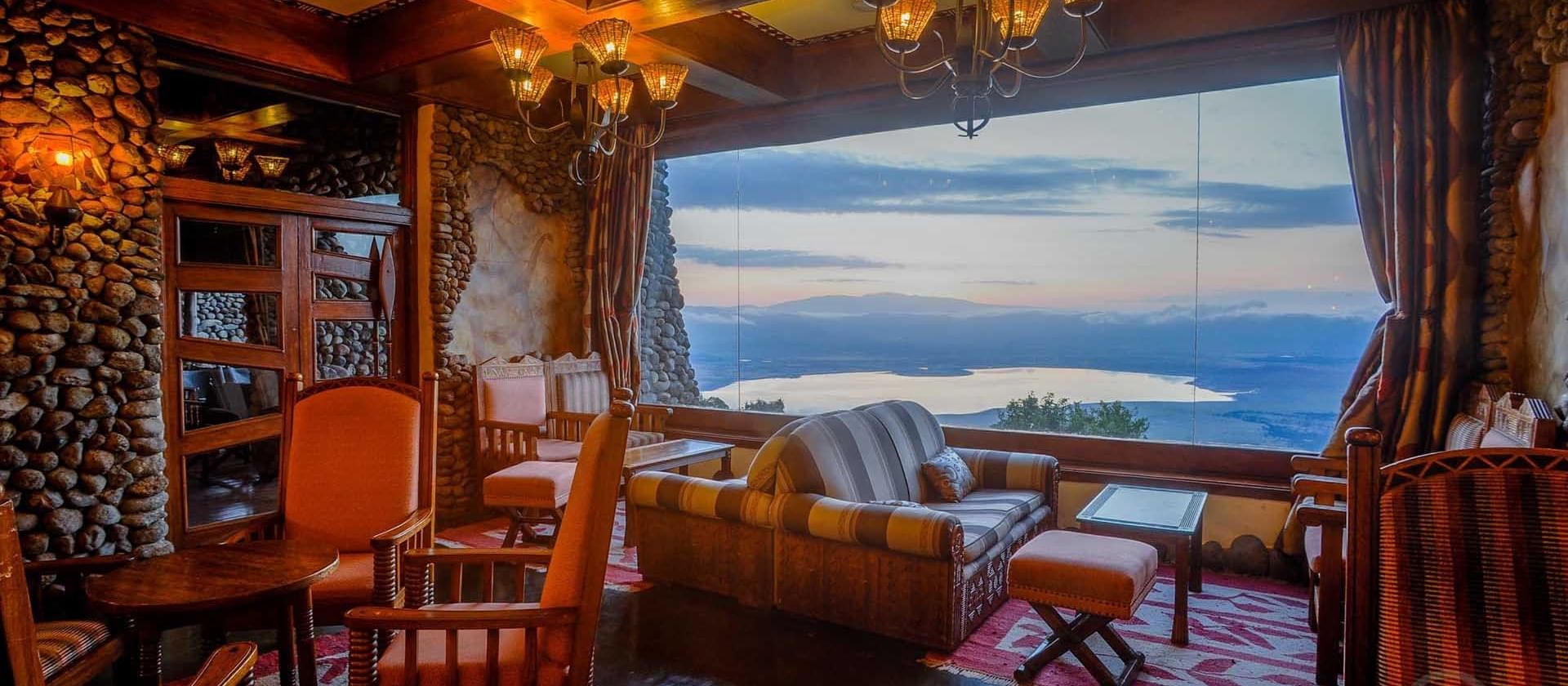 View of Ngorongoro Crater from the Lounge at Ngorongoro Serena Safari Lodge
