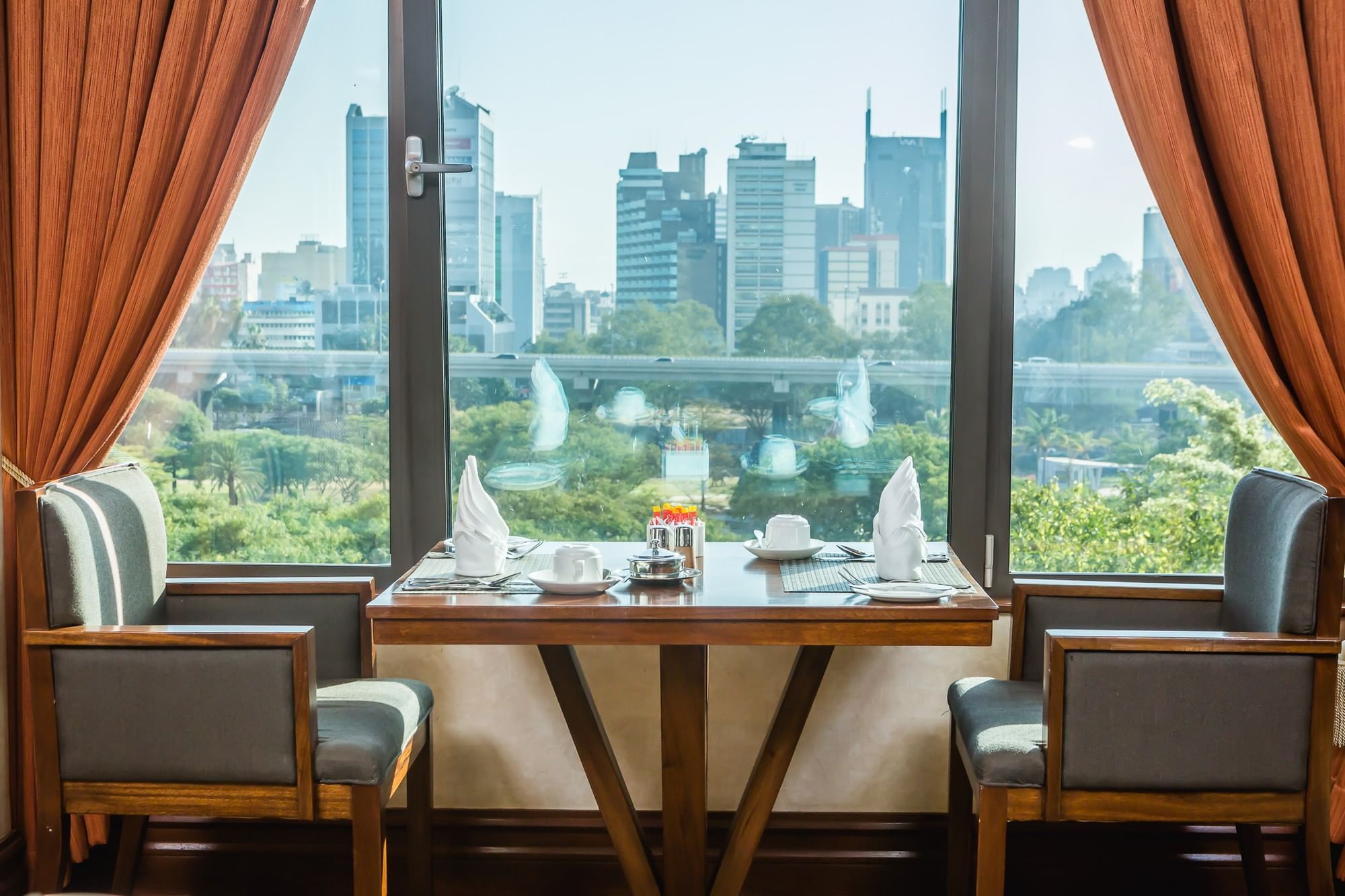 Blending African design influences from Ethiopia, the Maghreb, West Africa, and East Africa, the interiors reflect our commitment to cultural richness, elegance, and comfort. Nestled in lush gardens beside Central Park, the hotel offers sweeping views of the city skyline and a sense of tranquillity in the heart of Nairobi.