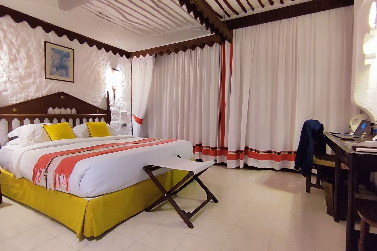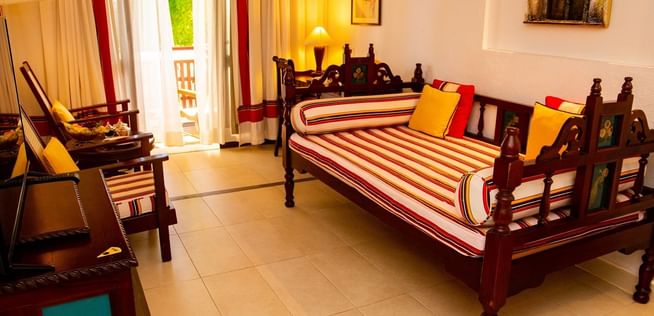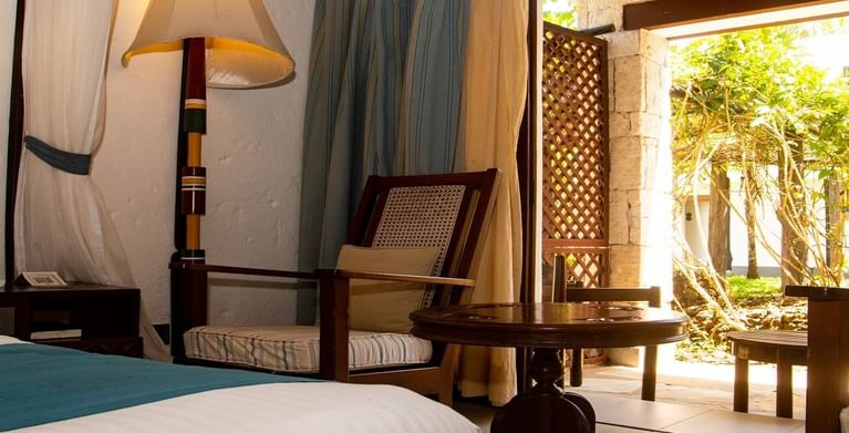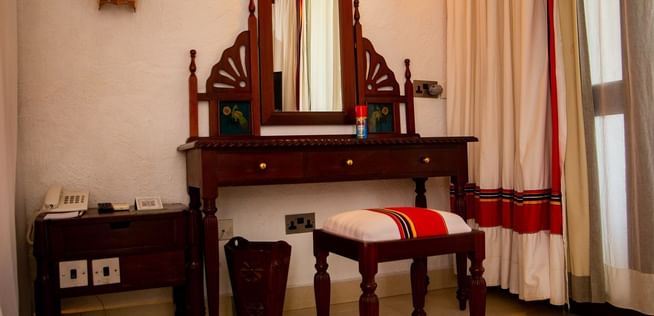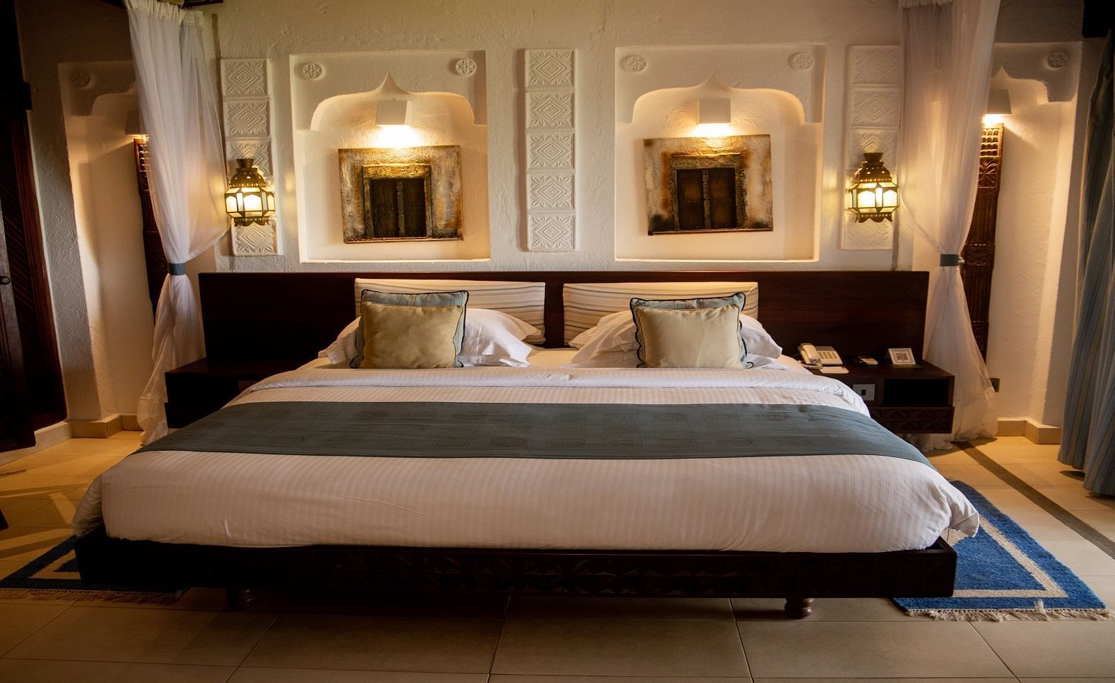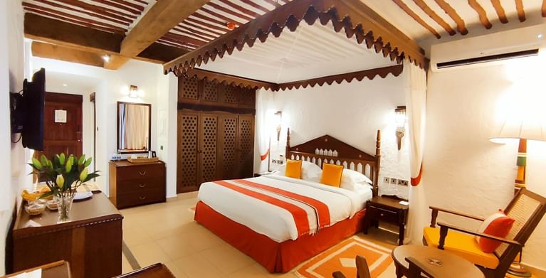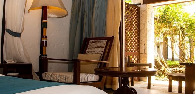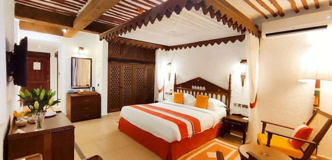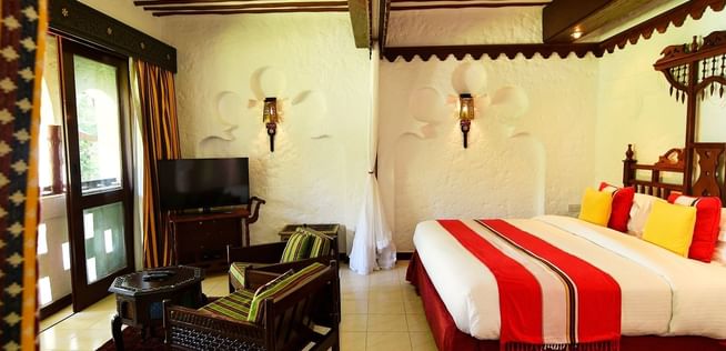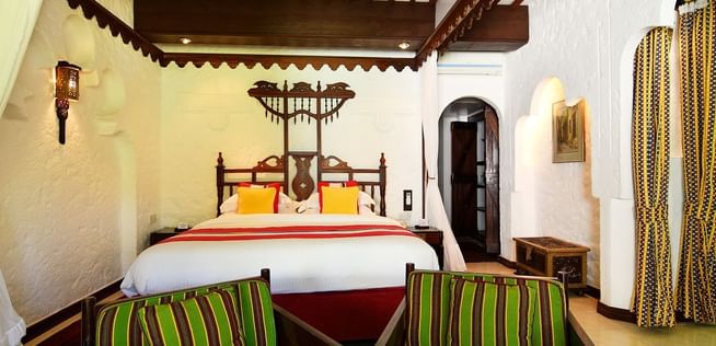 All rooms and suites are beautifully appointed and invitingly relaxing with Maasai-inspired hand-painted wall frescos, supremely comfortable beds and private balconies or terraces with ocean views or facing the courtyard gardens. Seamlessly infused modern comforts include complimentary wireless Internet, minibars and flat-screen televisions with cable and satellite programming.