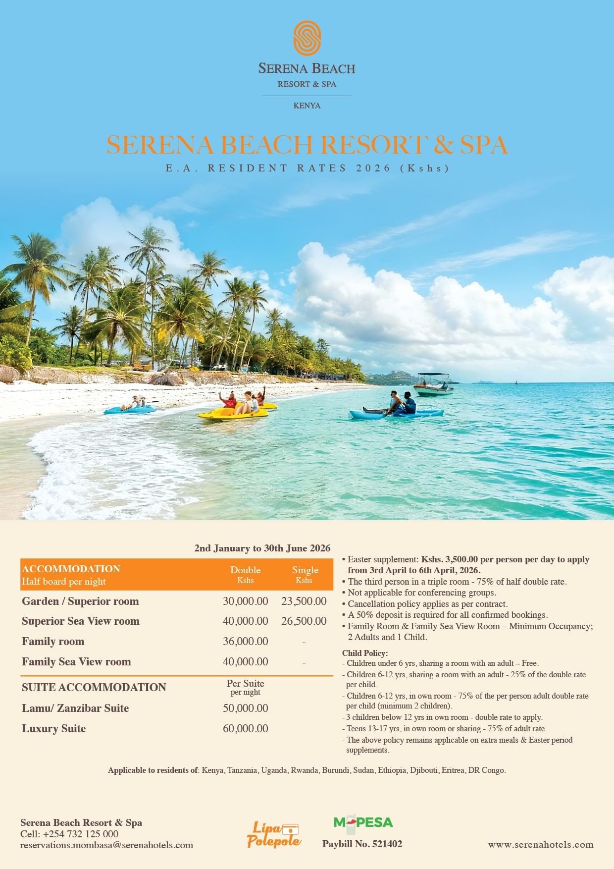 T: (+254) 732125000 T: +254732125000 E: mombasa@serenahotels.com