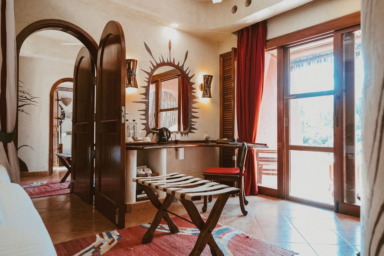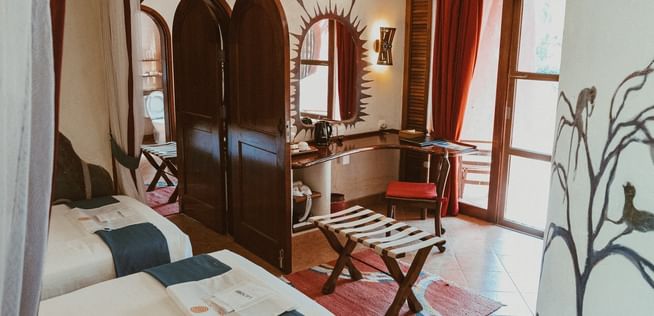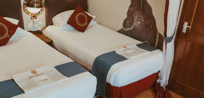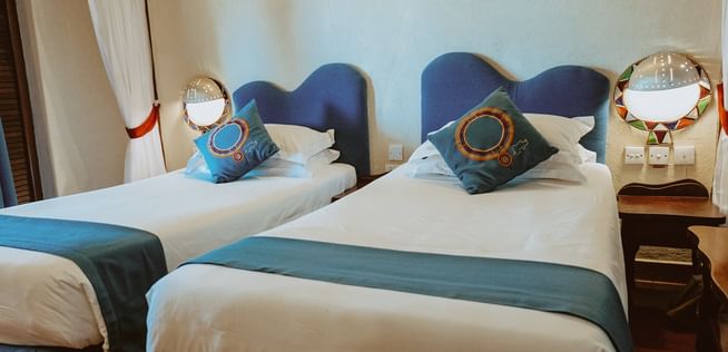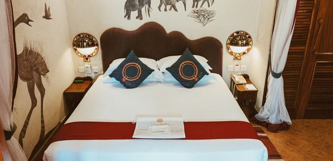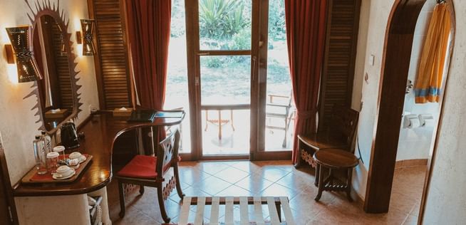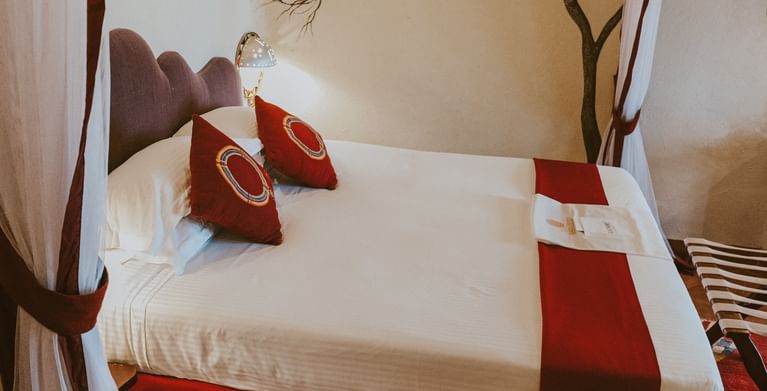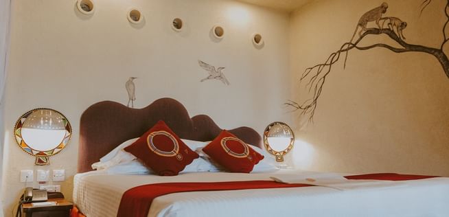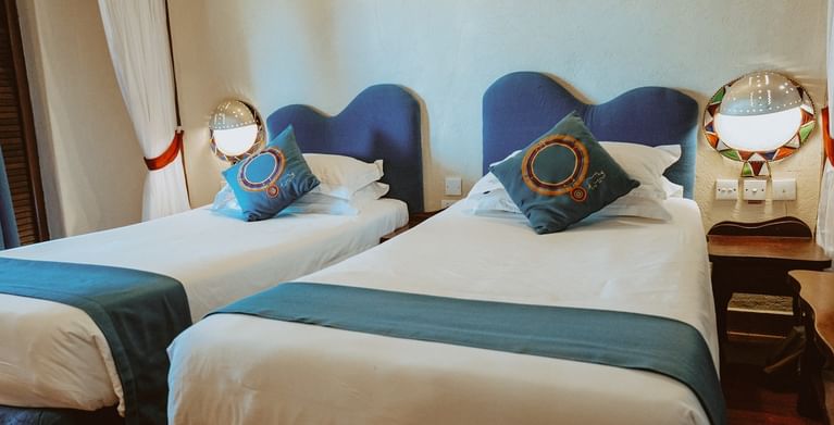 酒店四周环绕着安博塞利国家公园的广阔而美丽的风景,能够使人全面沉浸在野外丛林中的生活。 每间客房都坐落在单层建筑中,直接通往场地,每个房间都以马赛玛雅他的主题为特色,手绘野生动物壁画,本地风格的家具和手工艺品,以及这些传说中的勇士的鲜艳的主色调为象征。 客人享受与自然的和谐,舒适与和谐的平衡,享受肯尼亚私人角落的独特乐趣。我们有92间客房和一间套房,提供快速无线上网,24小时客房服务和私人露台,可以与肯尼亚最好的游猎山庄相媲美。 为了家庭和团体游客的舒适和方便,我们能提供九套相通的客房。