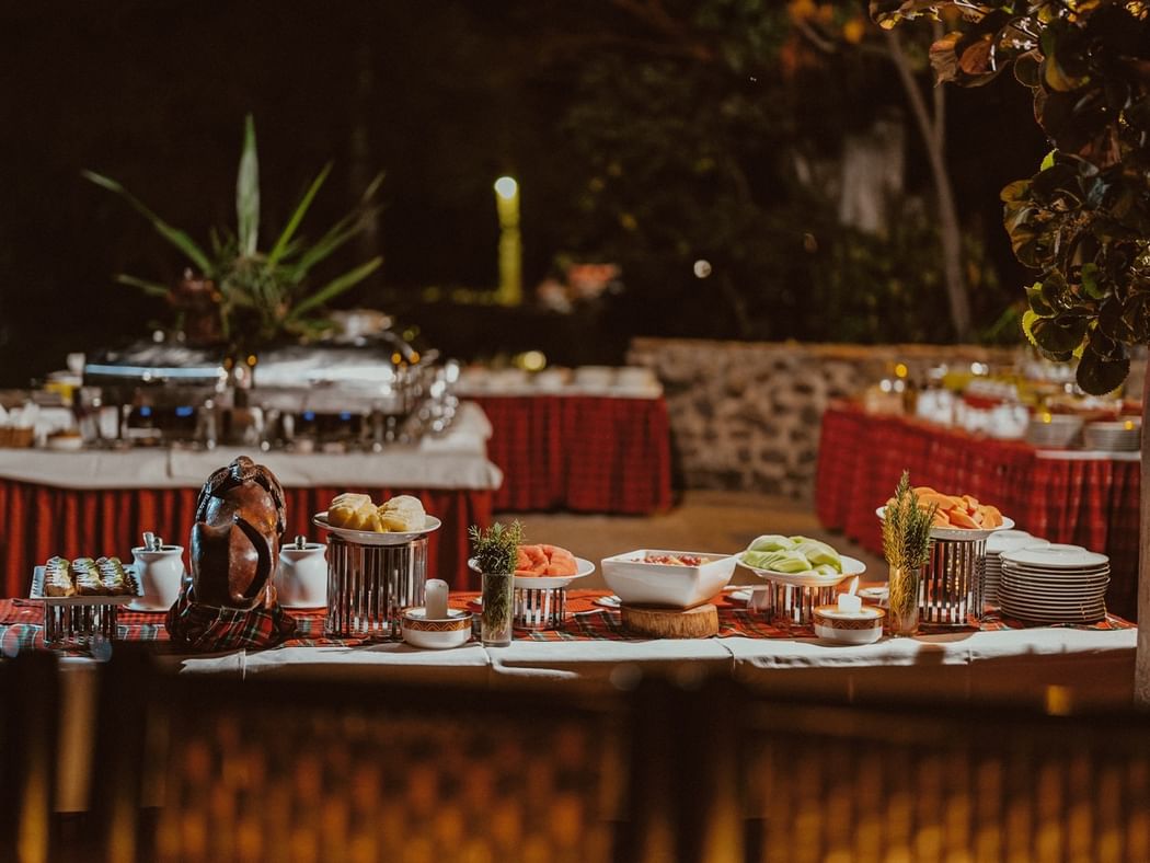 Nothing is quite so essentially “Safari” as the traditional ‘bush dinner', especially when it is enlivened by the presence of a group of scarlet-clad Maasai morans (warriors). Located in a grove of acacia trees immediately adjacent to the lodge, your lantern-lit dinner begins with cocktails around the campfire. A 6-course dinner will then be cooked on a blazing BBQ, accompanied by a wide range of salads and vegetables. While dessert and coffee is served, the Maasai will entertain you with songs, chants and dance displays. Dine in the wild and taste safari-life at its best.