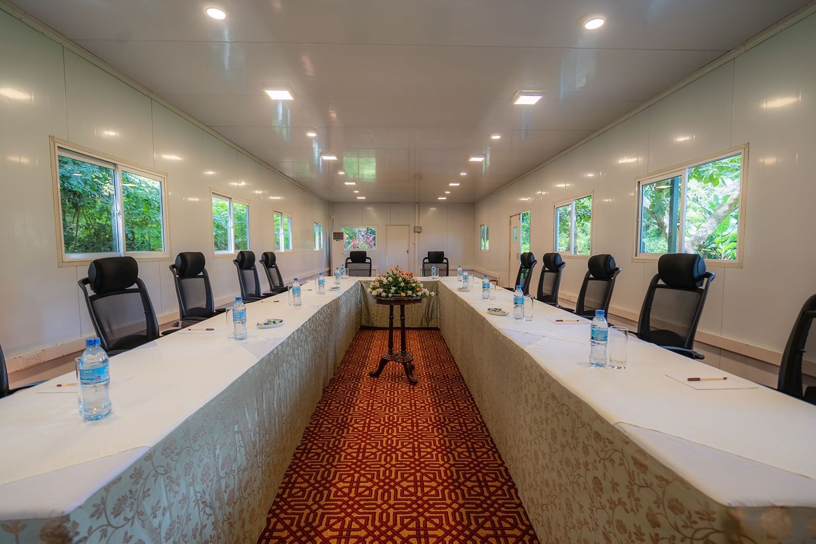 我们的帆布会议室是一个传统的游猎帐篷搭建而成,是建在俯瞰杜卢帝湖的木质甲板上,室内配有空调,免费无线上网和。 我们还能为团建活动提供公共花园和梯田户外场地。