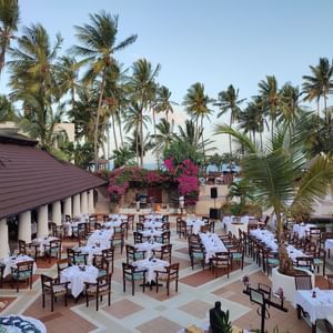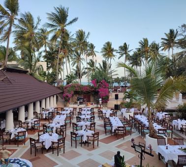 度假村内的所有餐厅和酒吧都是与众不同的,会为您带来蒙巴萨最好的餐厅的用餐体验。 我们一流的就餐环境,菜肴的香味和徐徐吹来的海风将刺激您的感官,为您带来用餐的别致体验。 我们的餐厅,酒吧,咖啡厅和市场欢迎您的到来。