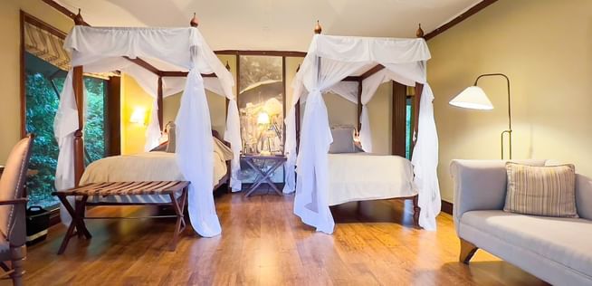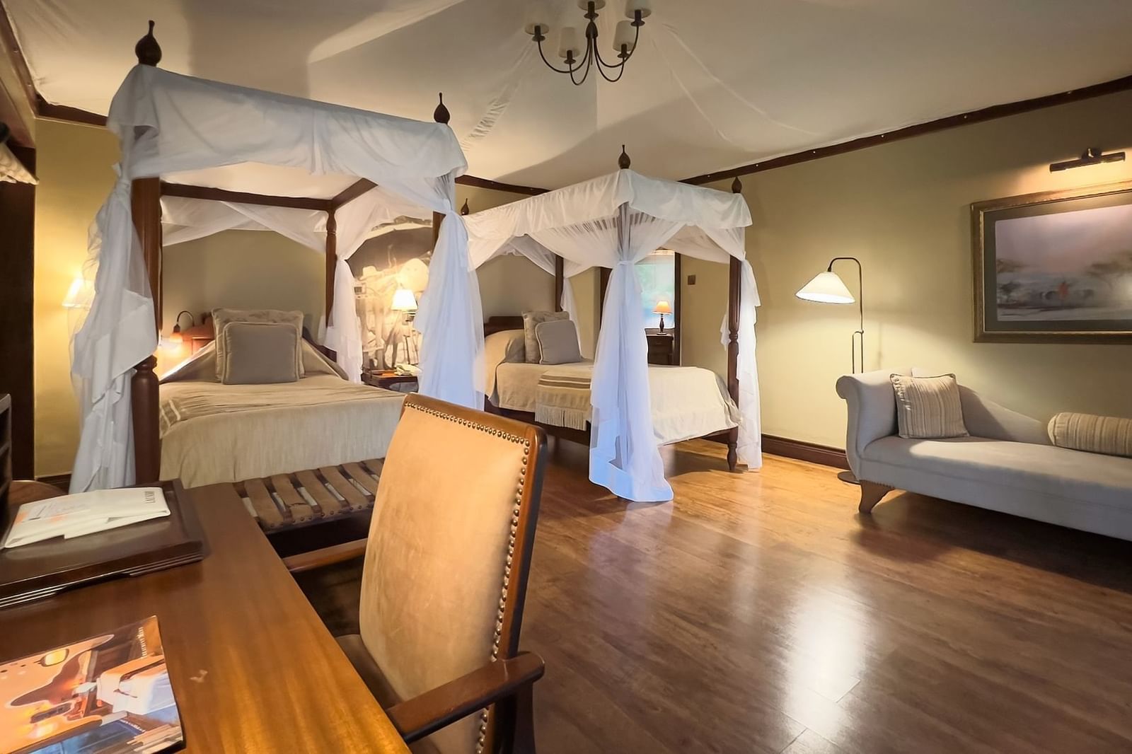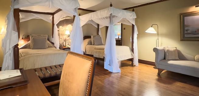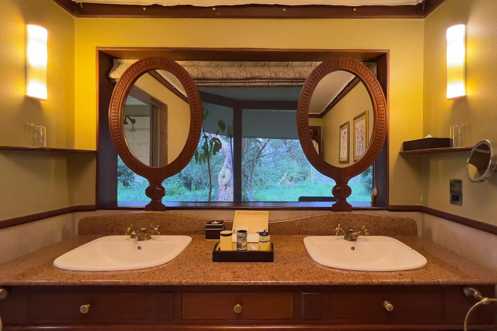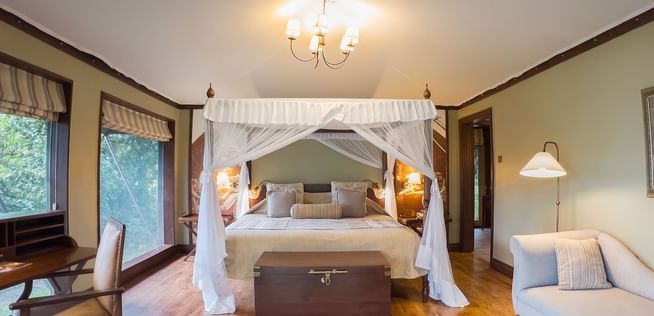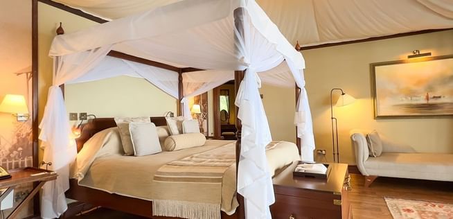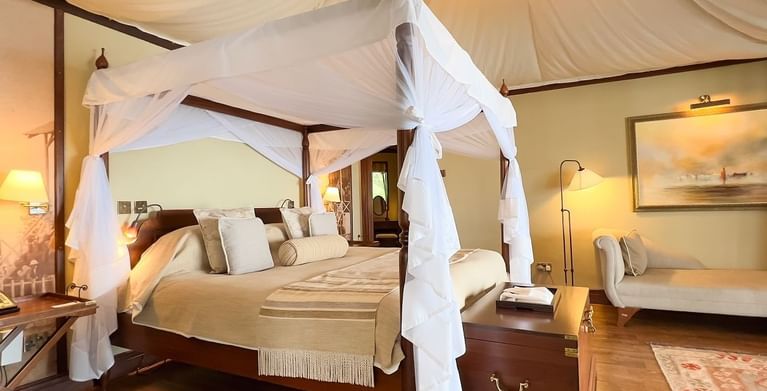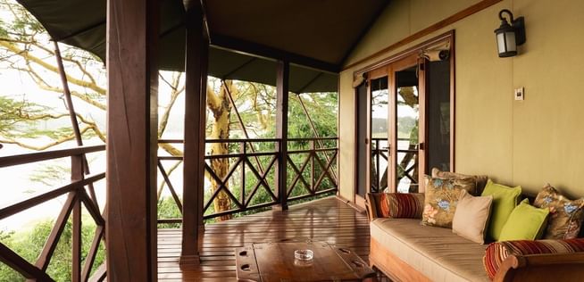 The extraordinarily refined tented accommodation at Lake Elmenteita Serena Camp provides an upscale retreat within the unspoilt magnificence of Kenya’s Soysambu Conservancy. Make yourself at home in your spacious, impeccably appointed tent, which offers charming décor and either one king or two twin beds, as well as a small sitting area and a bathroom with 24-hour hot showers and double vanities. Exceedingly comfortable four-poster beds boast deluxe linens and mosquito netting; a well-lit work desk and chair is a cosy spot in which to pen postcards to loved ones. Take advantage of free Wi-Fi in your tent and throughout the camp to stay connected during your visit, or step out onto your private balcony to savour the striking lake views. Room service is available for your convenience as well.