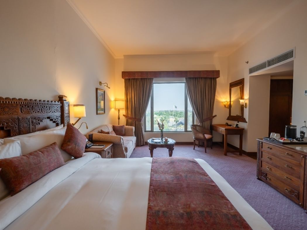 进入彷如宁静绿洲的豪华间,可以欣赏到酒店优美的园景花园和城市景色。客房有一个舒适的国王或两张单人床可以供您选择。这间客房配有一张办公桌,保险箱和带豪华洗浴用品的宽敞浴室,确保客人享有真正轻松的住宿。无烟客房也可根据要求和实际的可用性来为您安排。