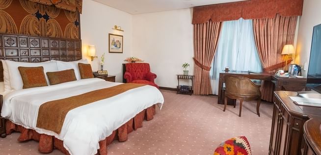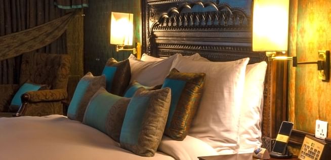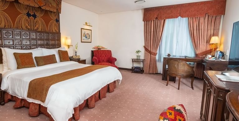 В каждом номере тщательно продуманная исламская эстетика прекрасно сочетается с современным комфортом. Авторская меблировка, мраморные узоры арабески, богато украшенные изделия из дерева и роскошные шелковые и шерстяные ковры ручной работы наполняют пространство роскошью, в то время как мягкое постельное белье, туалетные принадлежности Penhaligon и бесплатный высокоскоростной Wi-Fi Fi побалуют вас современными удобствами.