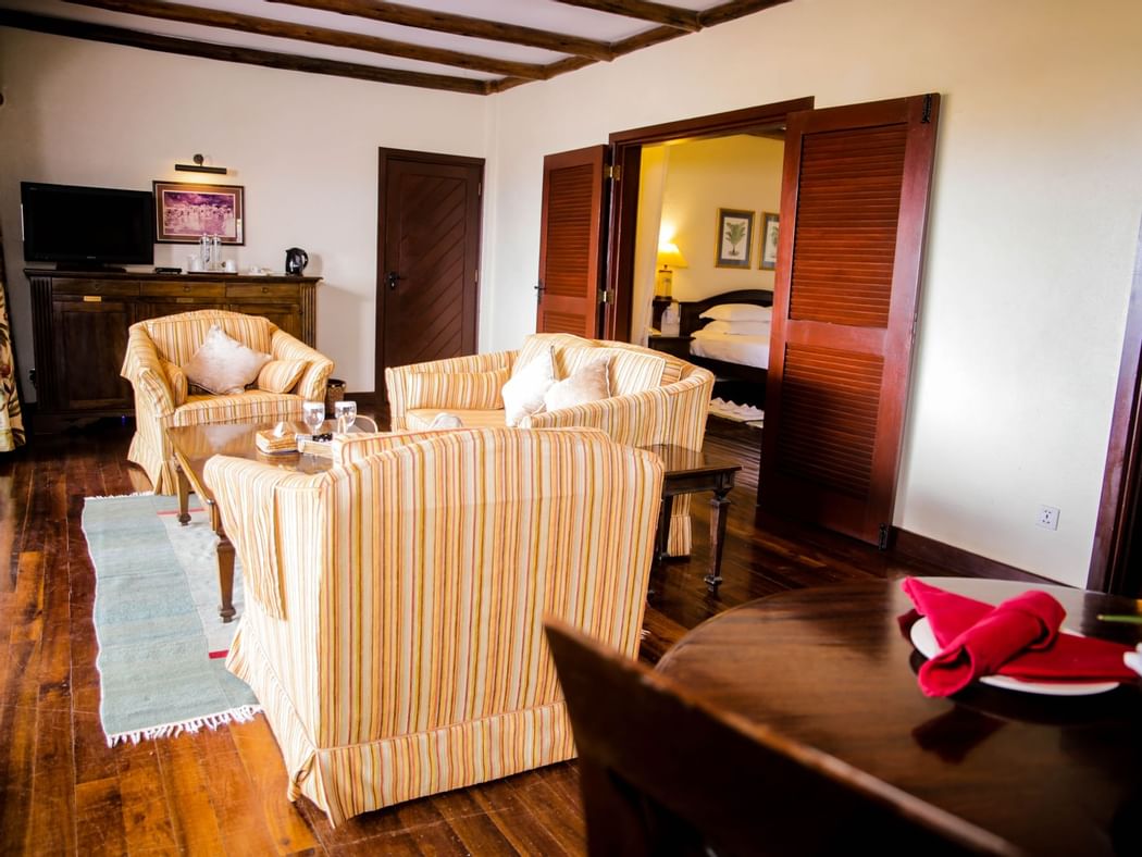 Equally viable as a presidential/CEO, honeymoon or VIP venue, our spacious appointed suites are accommodated in their own volcanic-stone building with stunning views over the waterhole and towards the Chyulu Hills. Each suite offers: