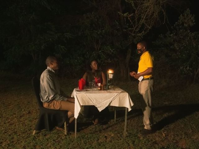 Dine in the wild and taste safari life at its best, accompanied by a group of scarlet-clad Maasai morans (warriors) or Akamba drummers. Located in a grove of acacia trees immediately adjacent to the lodge, your lantern-lit dinner begins with cocktails around the campfire. Dinner will then be cooked on a blazing BBQ, accompanied by a wide range of salads and vegetables. While dessert and coffee are served, our cultural entertainers will provide you with songs, chants and dance displays.