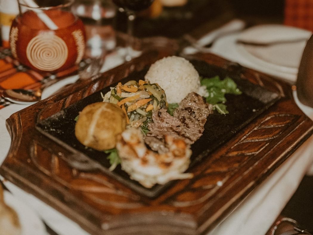 我们的五道菜晚餐菜单提供了多种选择,素食选项始终可用。客人还可以享受三个特殊的“主题”之夜。这个受欢迎的服务有广泛的国际食品选项,从意大利面,烧烤到正宗的肯尼亚特色菜。享受“传统烤肉”,“苏库马”(西红柿,洋葱,大蒜,芫等当地羽衣甘蓝),“波西米亚”(玉米)等当地美味佳肴。